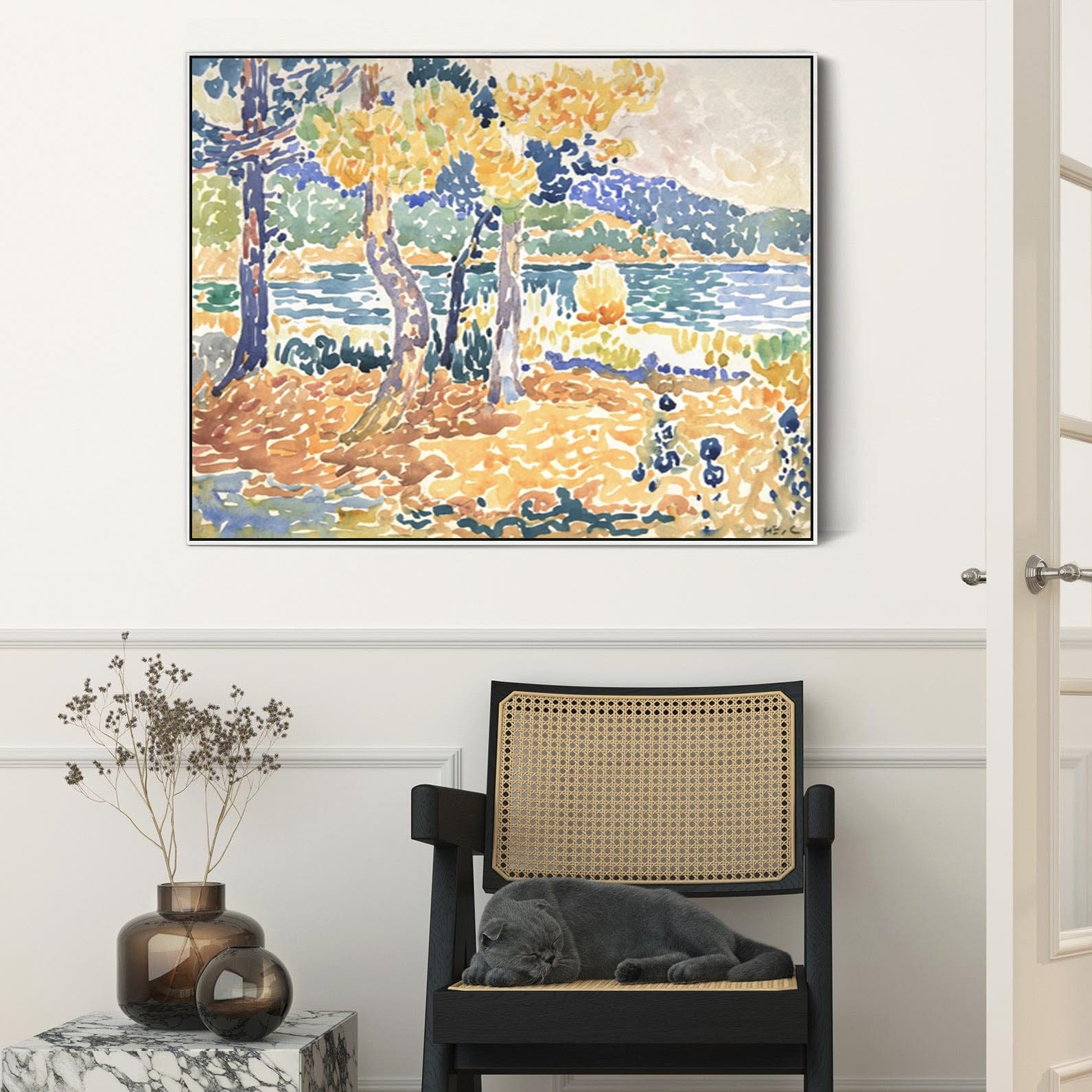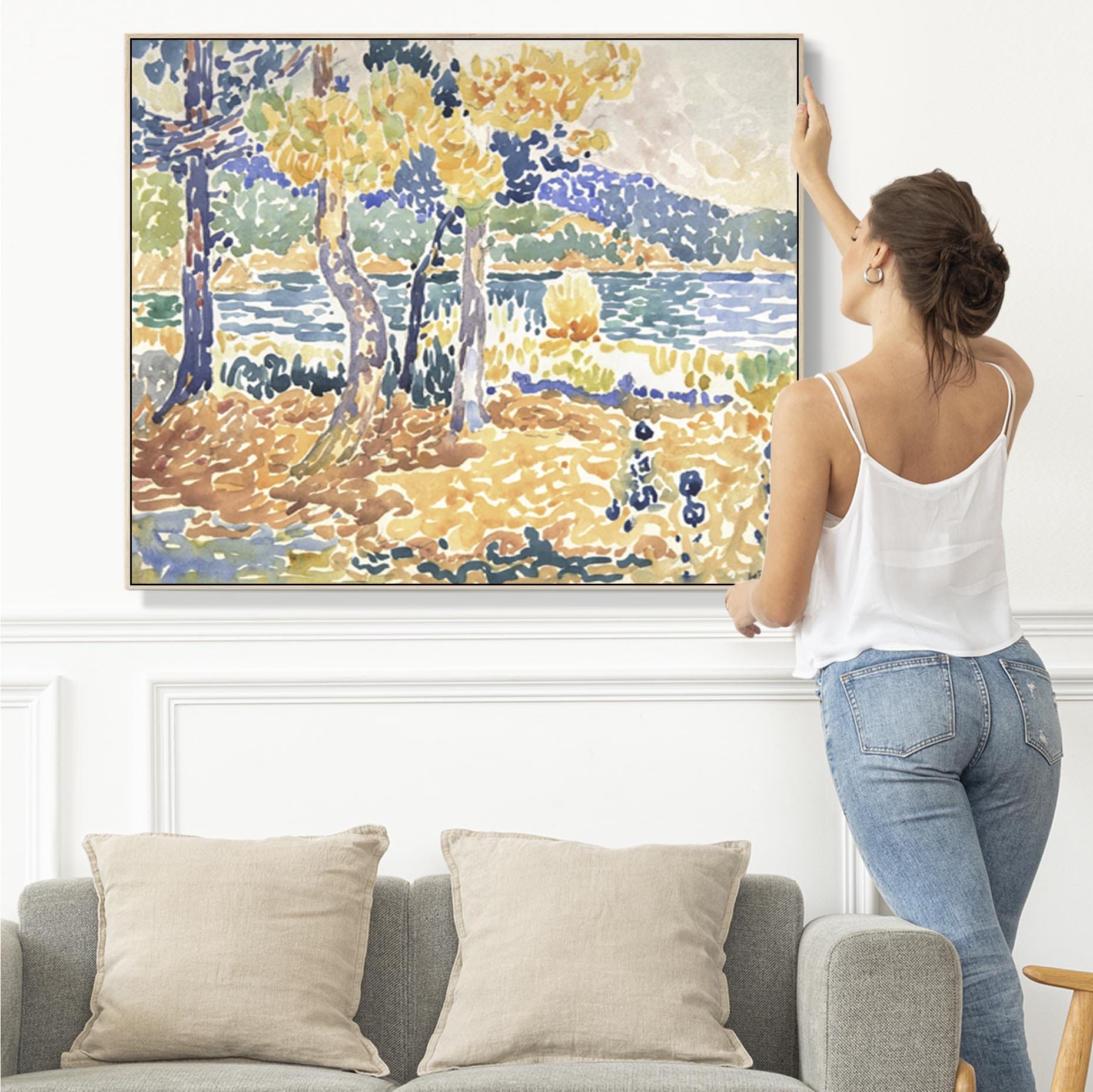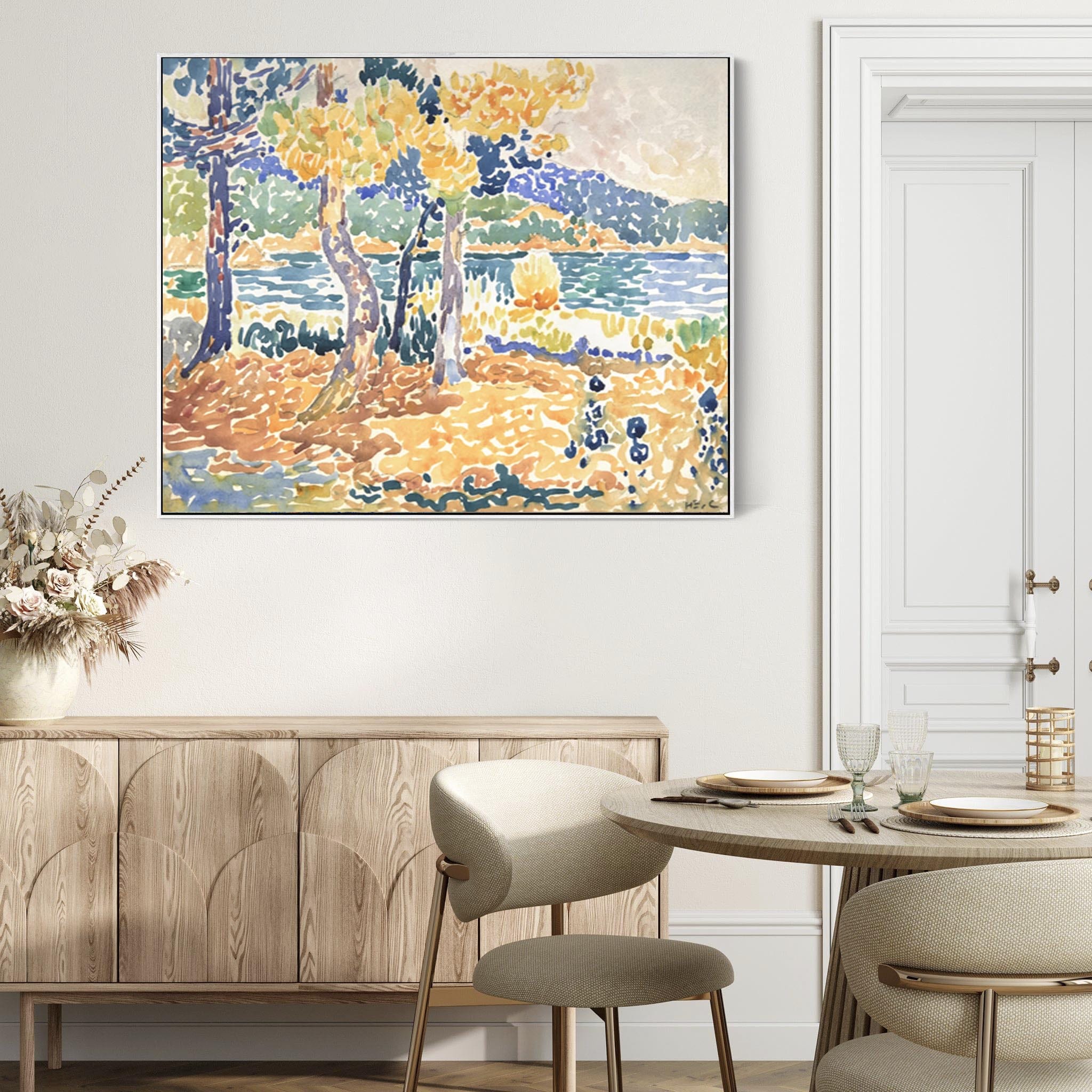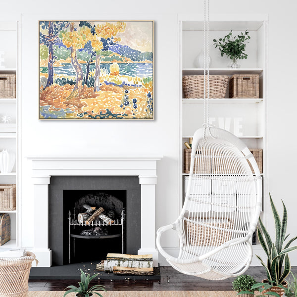 Large Henri Edmond Cross Framed Wall Art Print of Pines on the Coastline Painting
