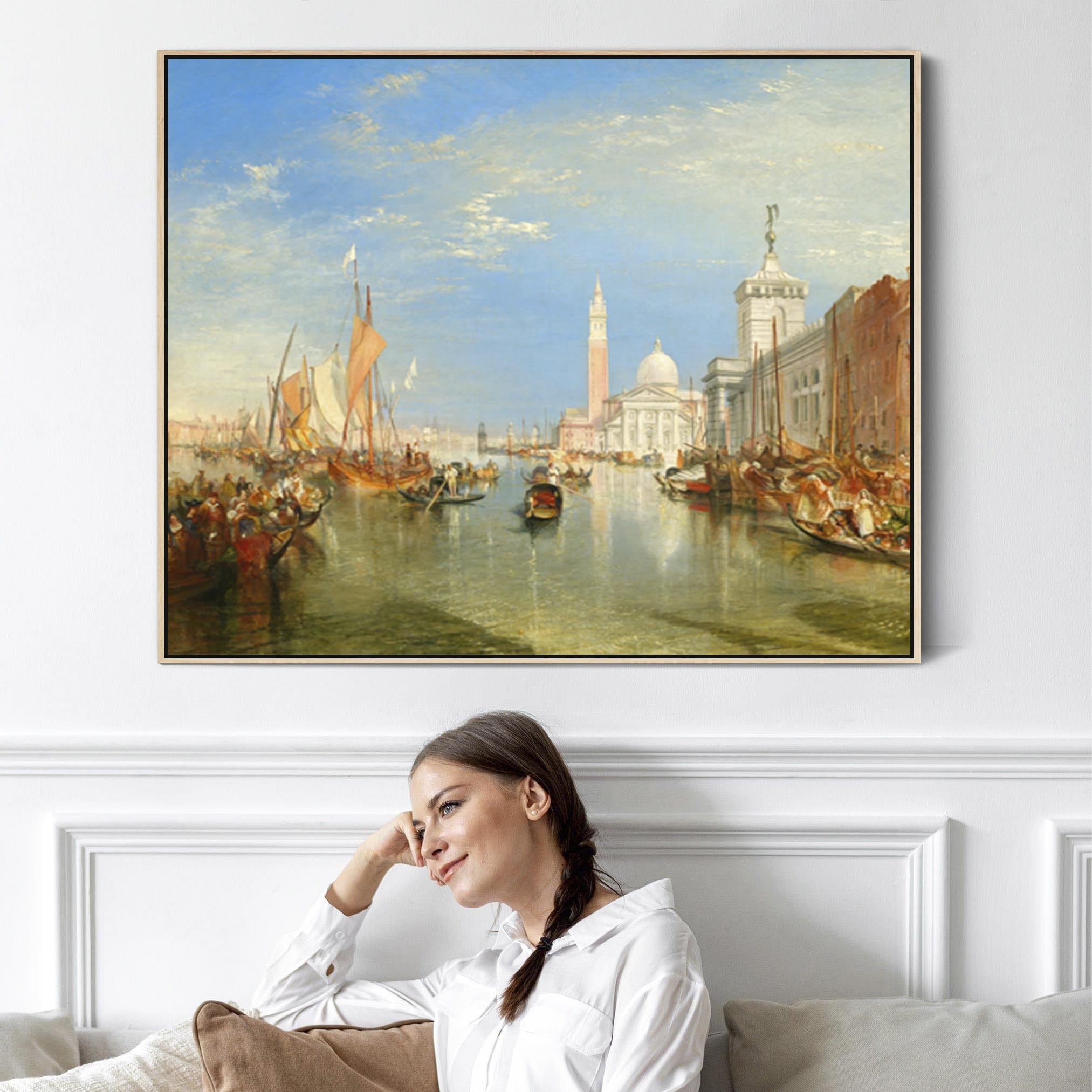 Large JMW William Turner Venice Wall Art Framed Canvas of Dogana San Giorgio Maggiore Painting