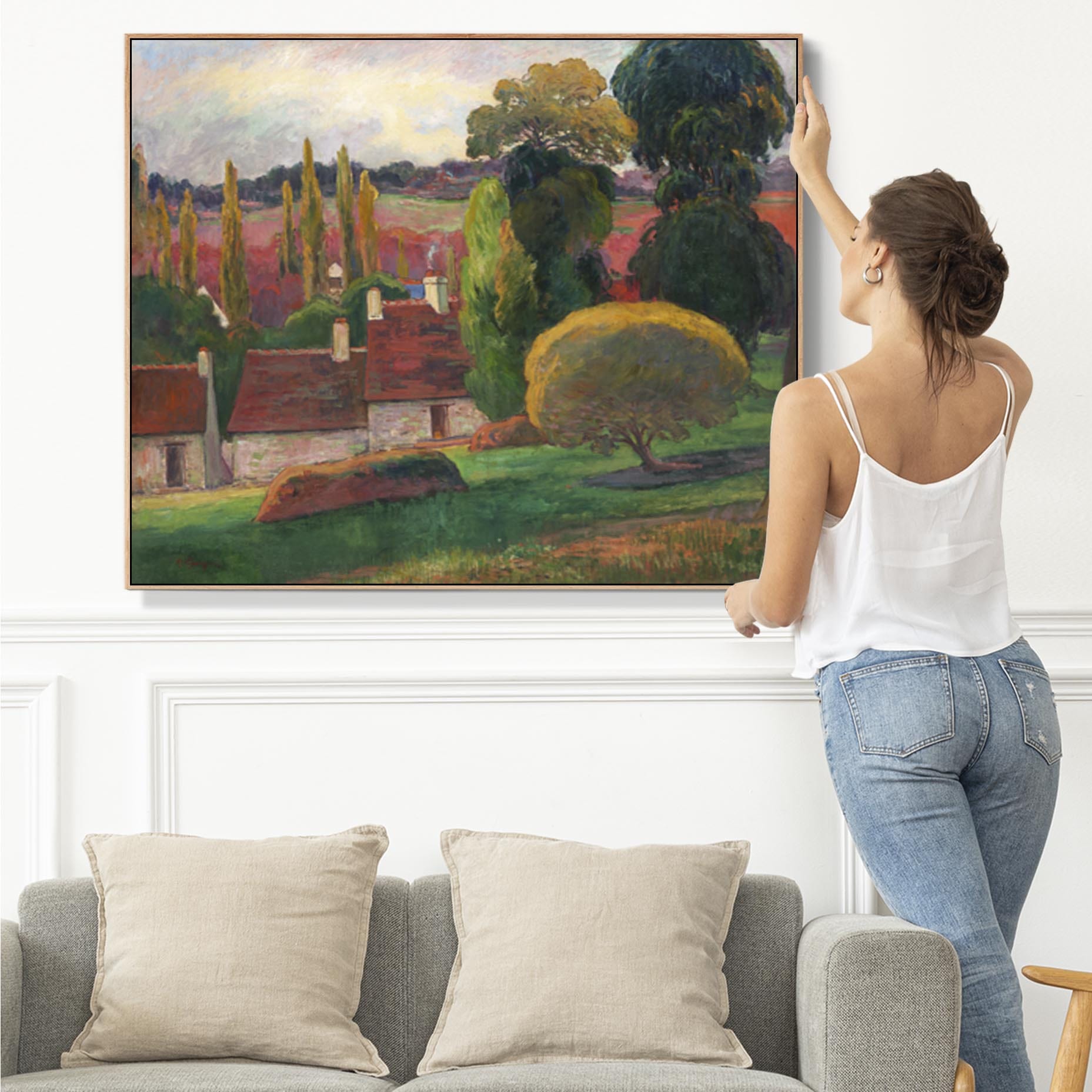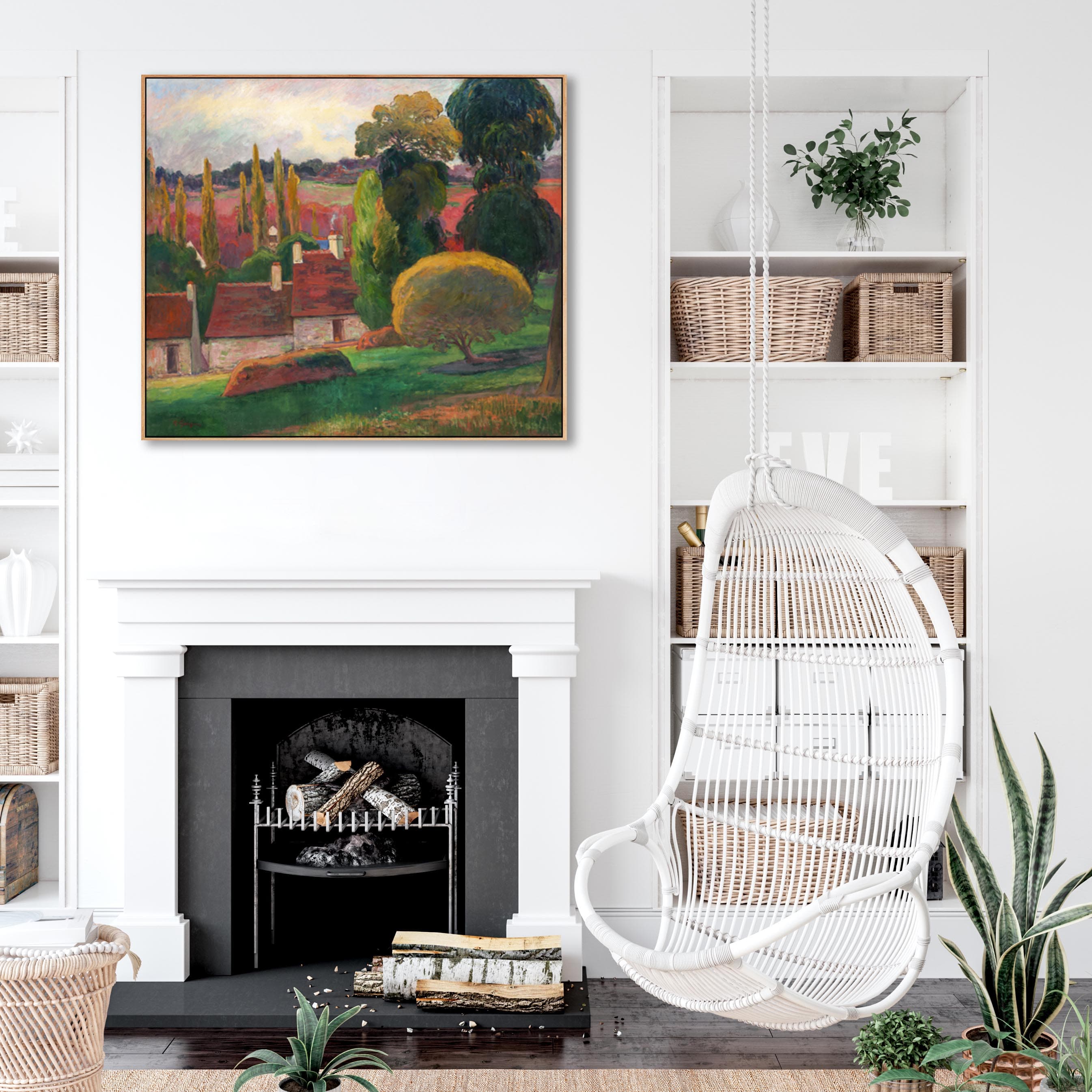 Large Paul Gauguin Wall Art Framed Canvas Print of a Farm in Brittany Landscape Painting