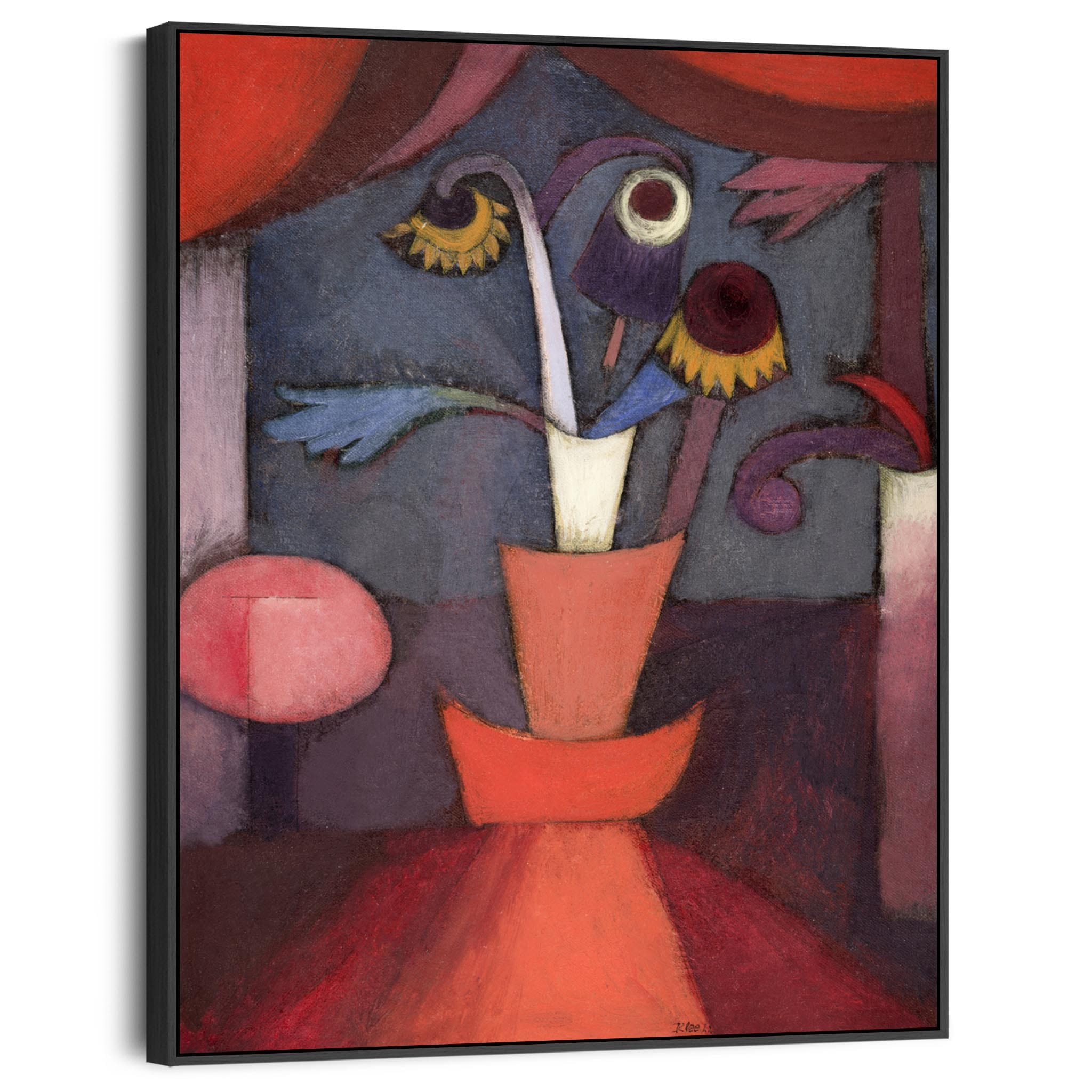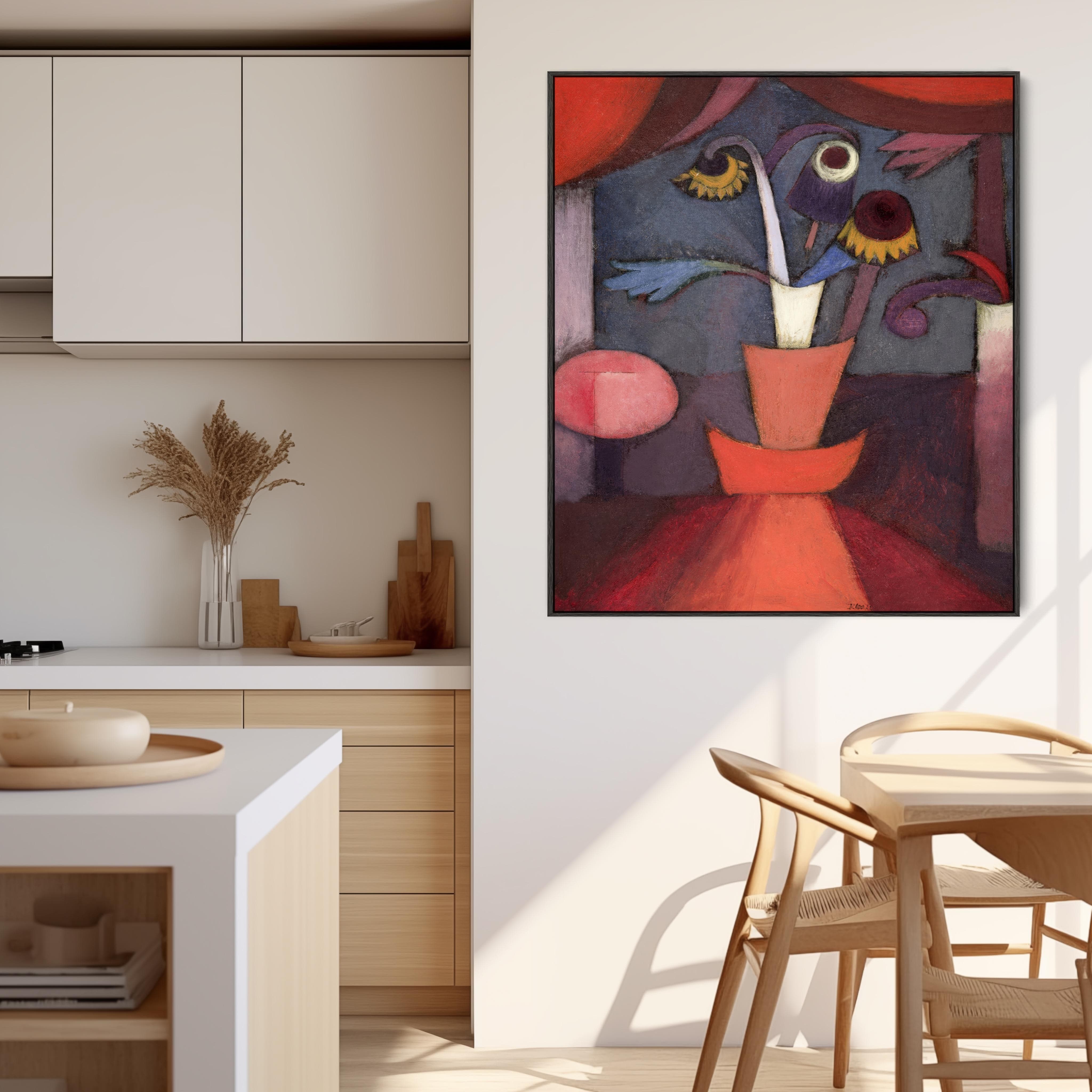 Large Red Floral Abstract Framed Prints on Canvas by Paul Klee - Autumn Flower
