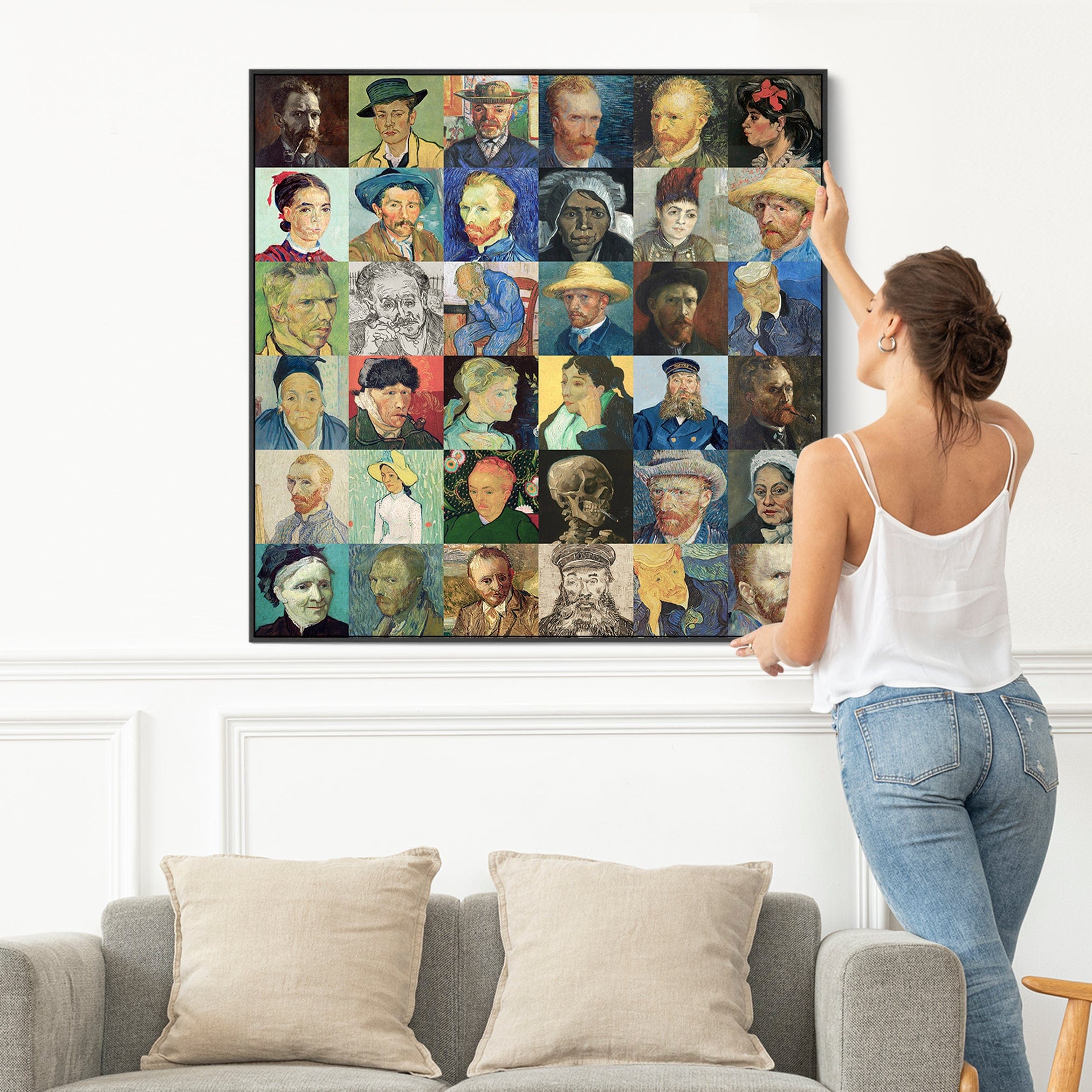 Large Vincent Van Gogh Framed Wall Art Print on Canvas - Multi Coloured 100cm x 100cm Collage