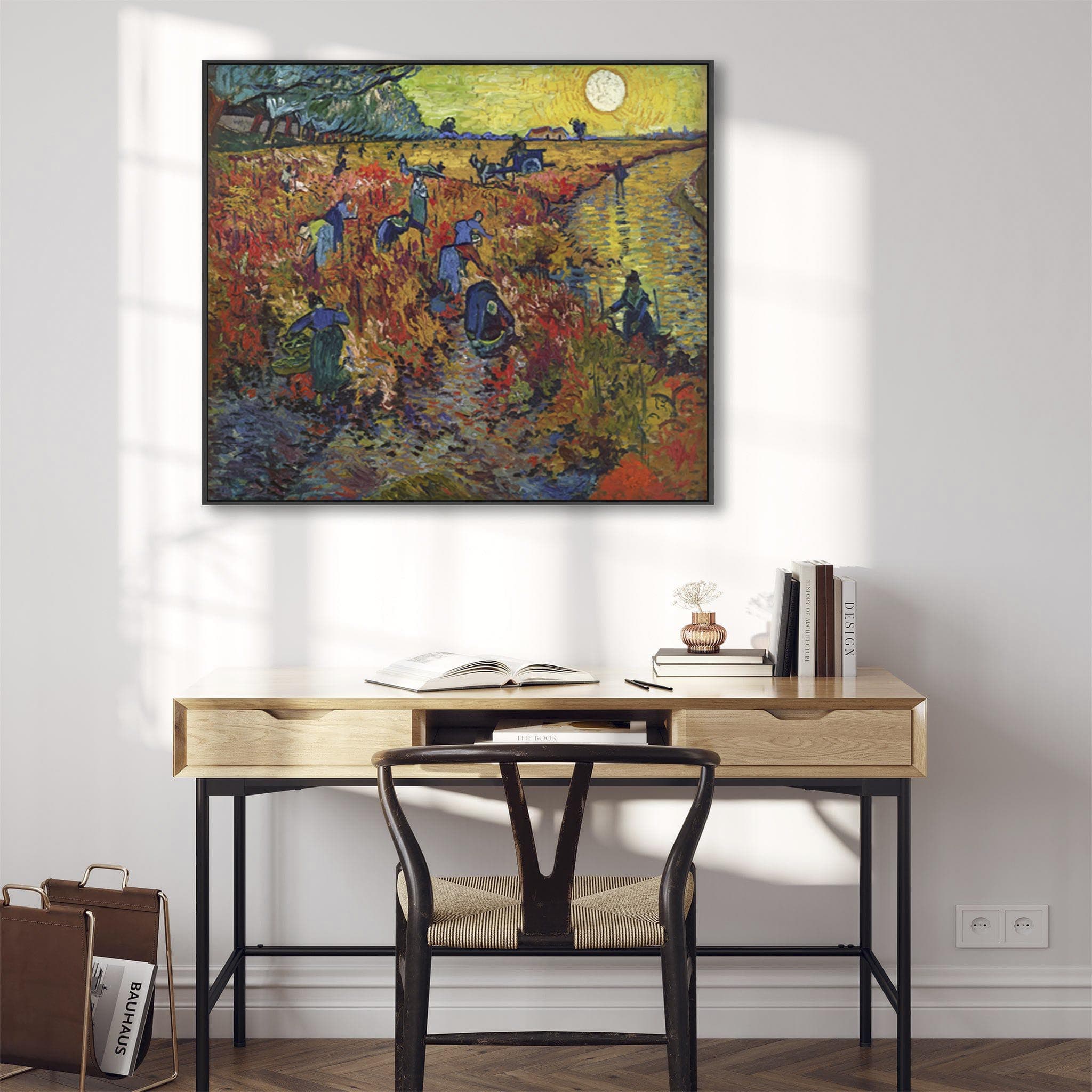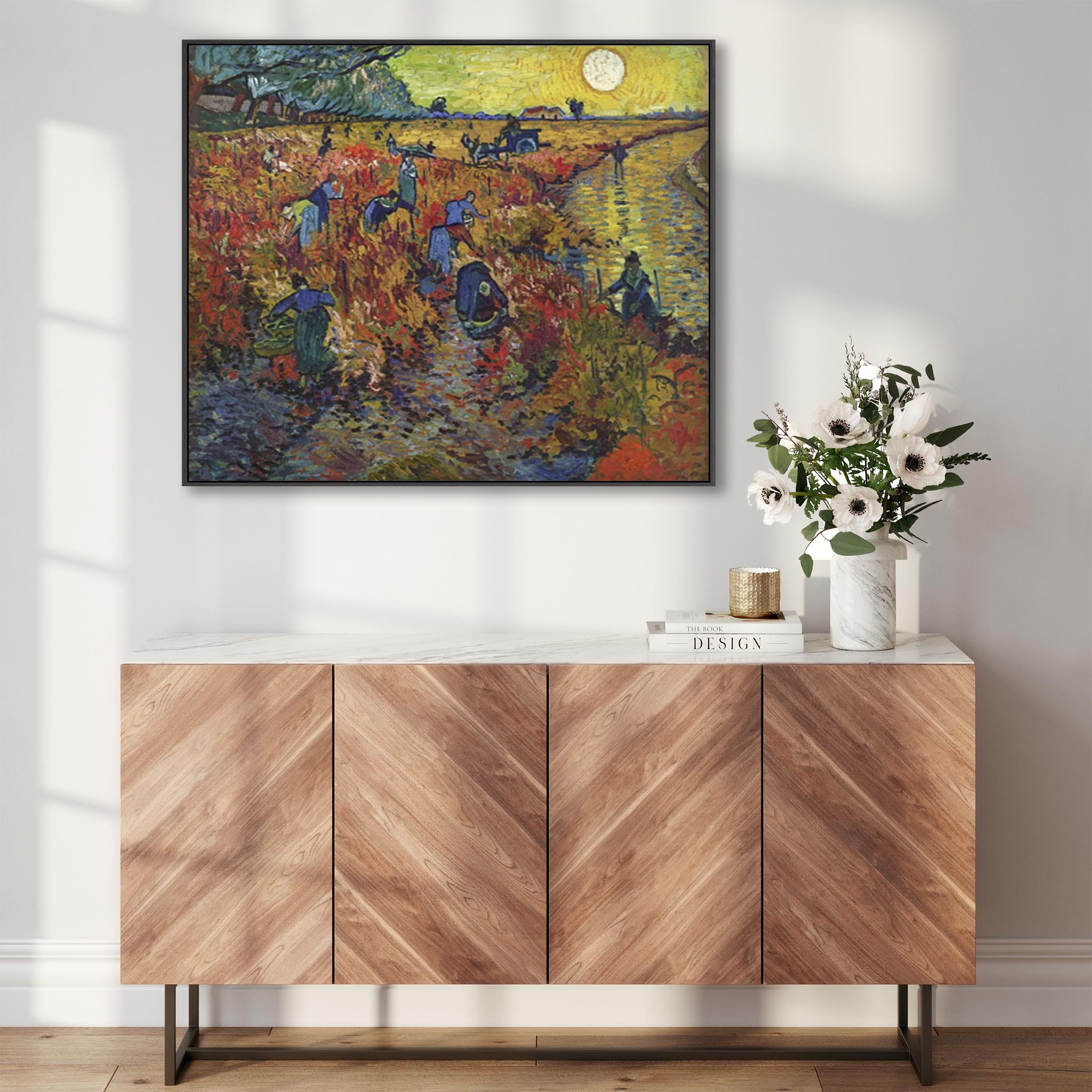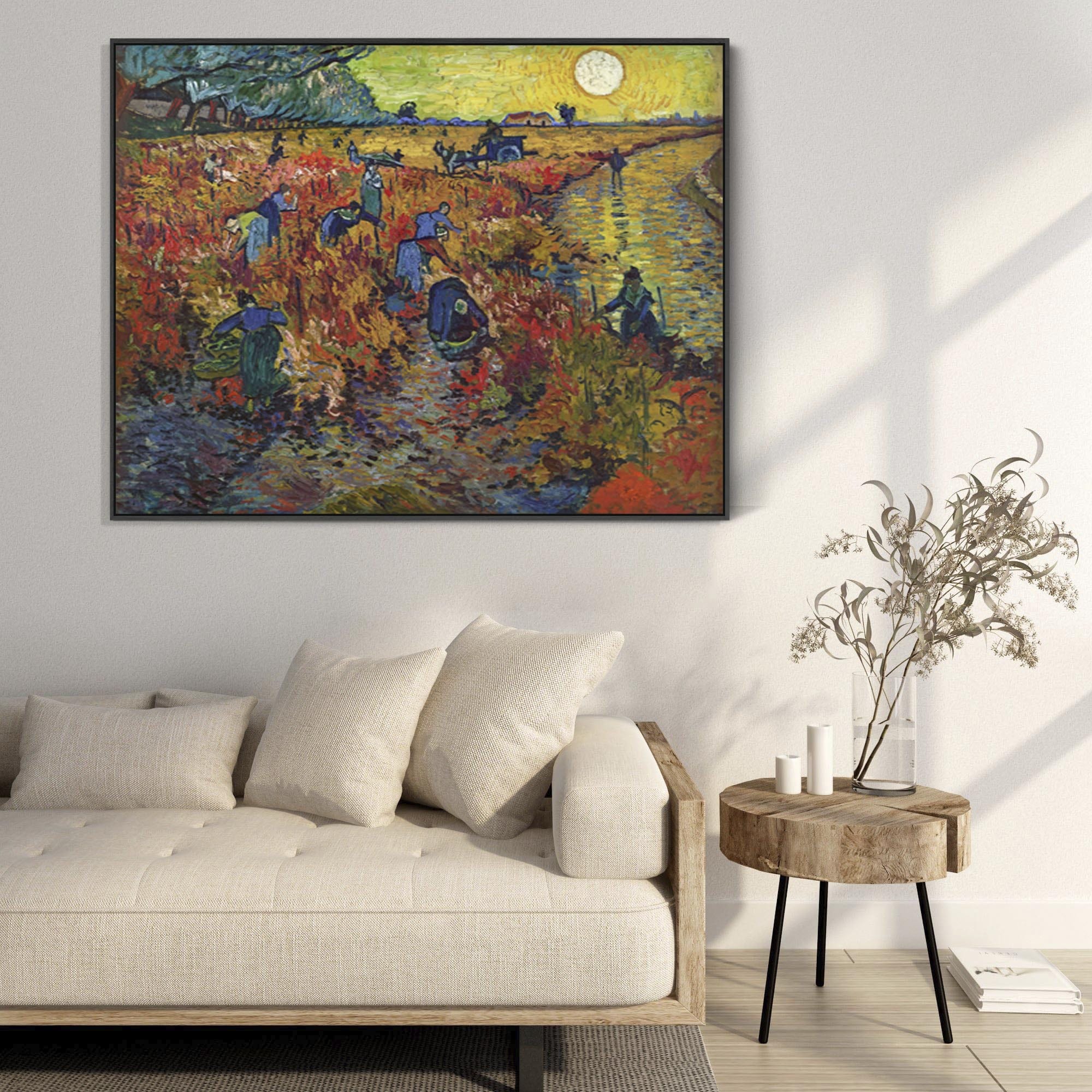 Large Vincent Van Gogh Landscape Wall Art Framed Canvas Print of Red Vineyards Painting