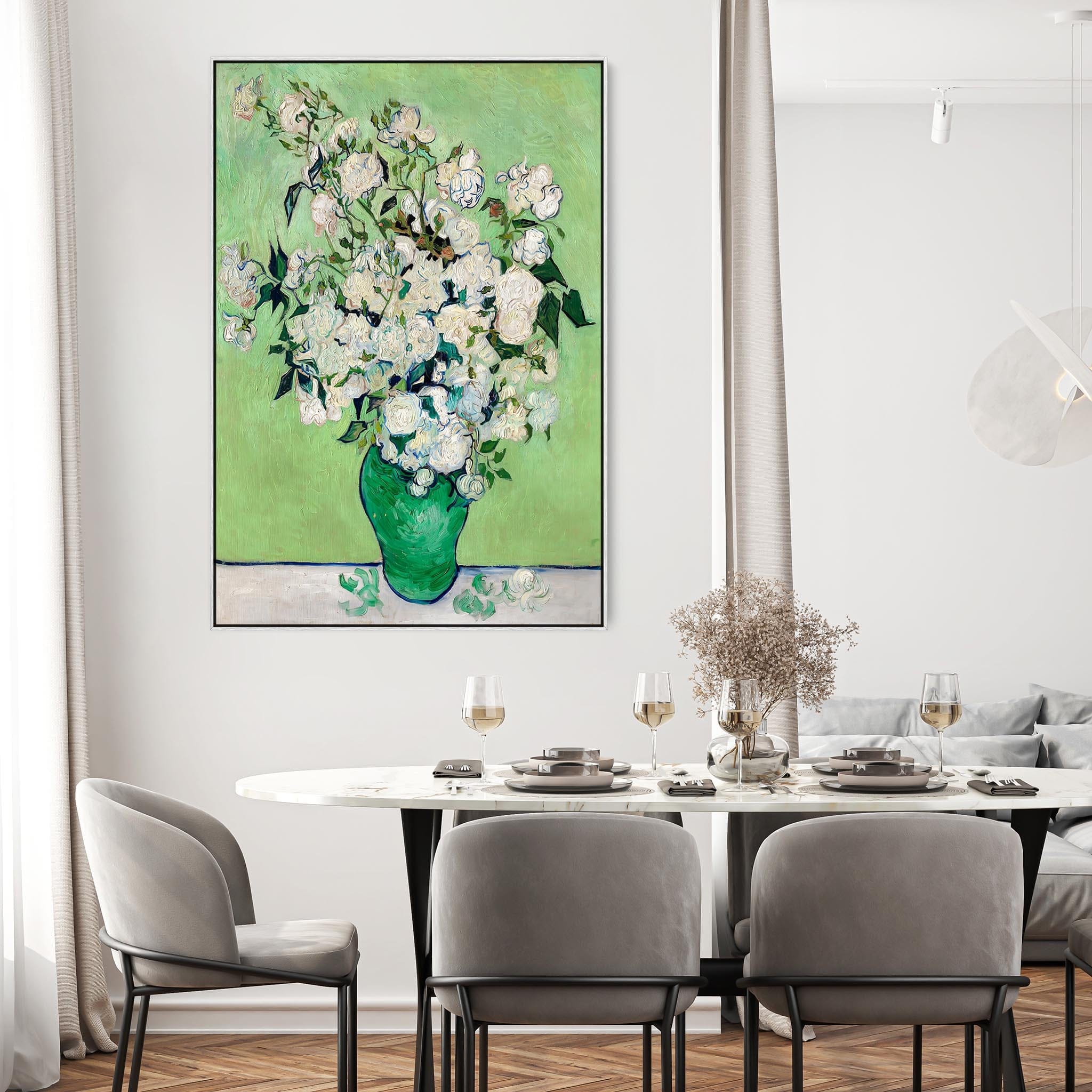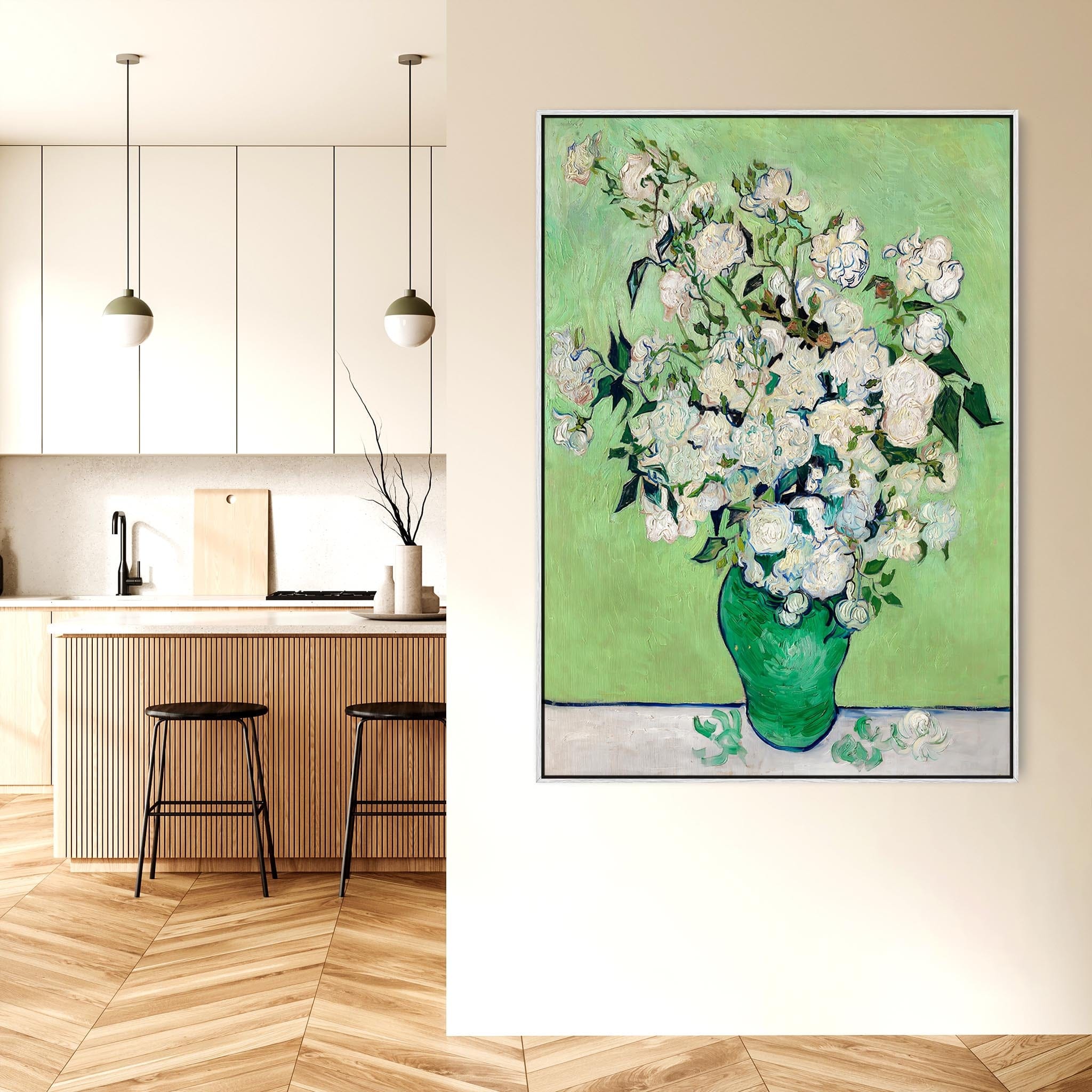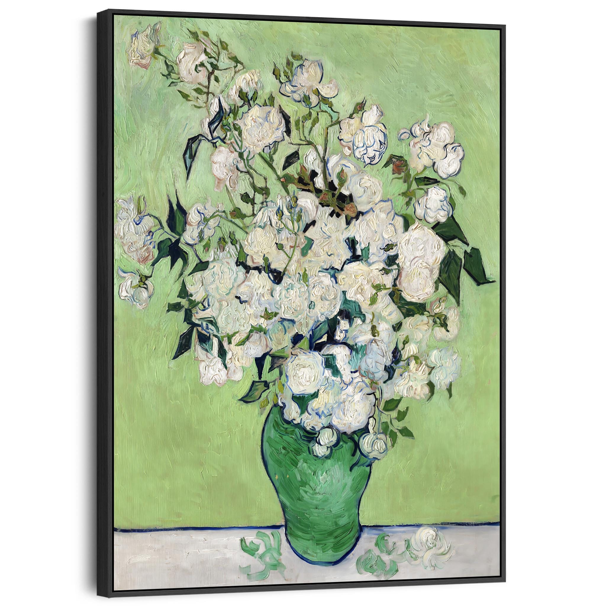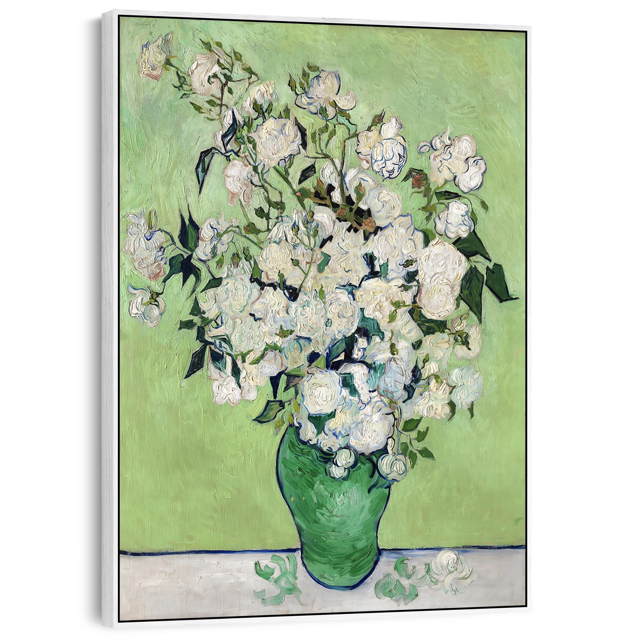 Large Vincent Van Gogh Wall Art Framed Canvas Print of White Roses Green Vase Painting