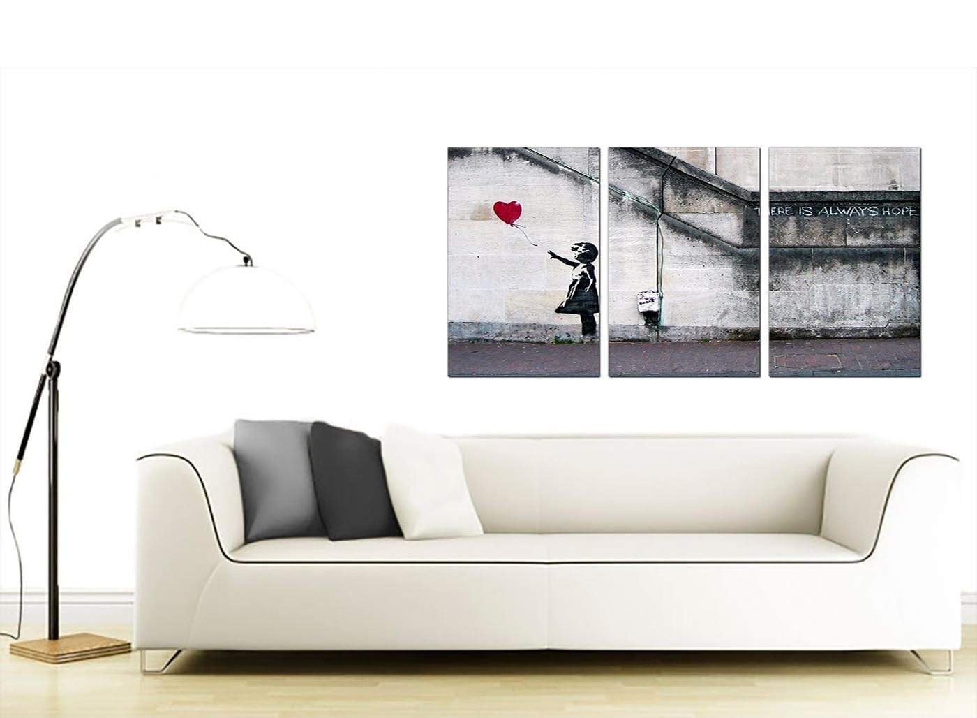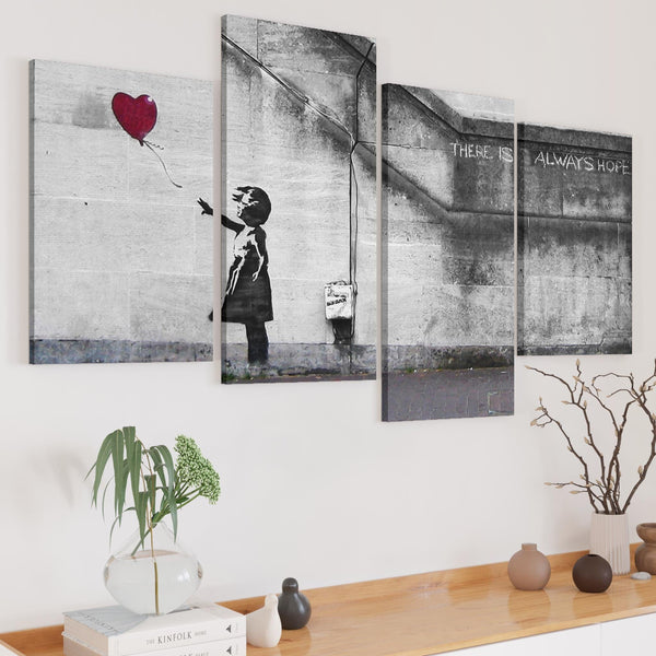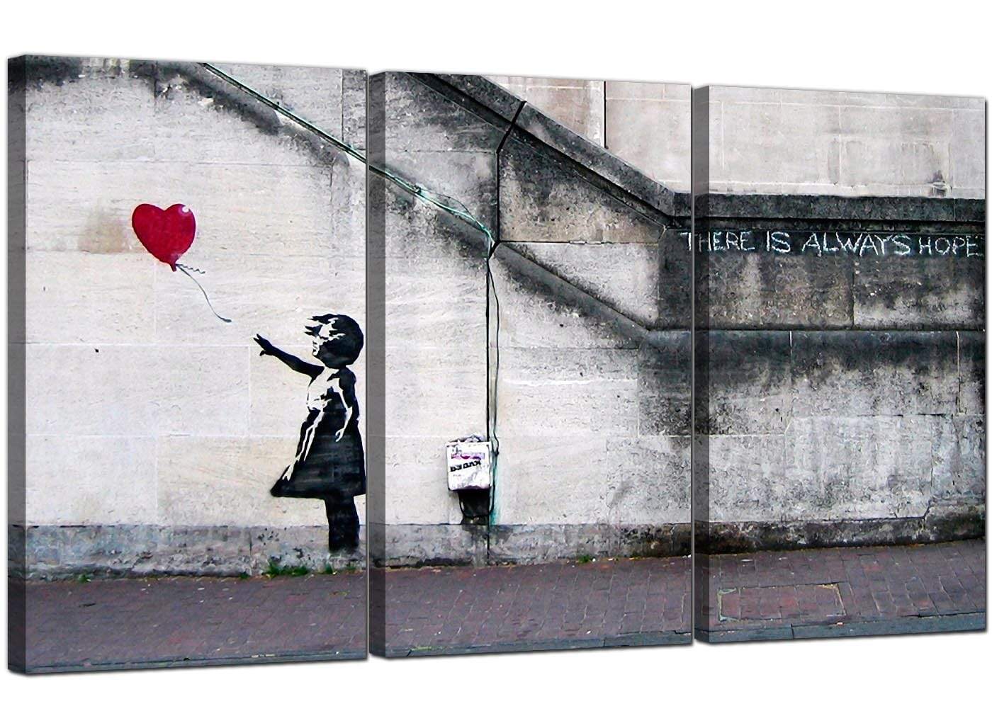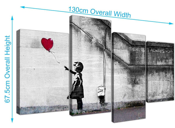 Modern Banksy Balloon Girl Red Heart Hope Canvas