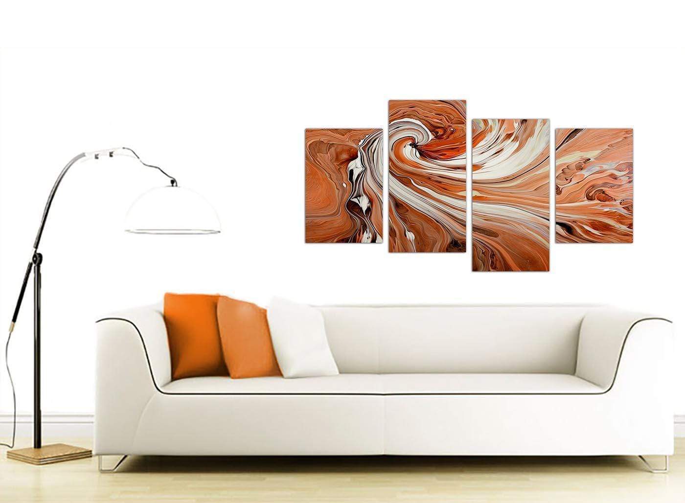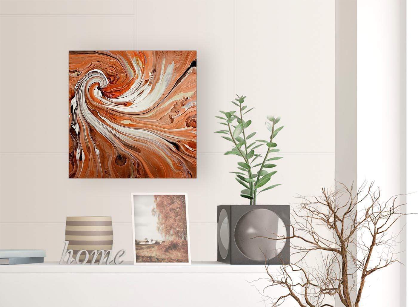 Modern Orange White Swirls Contemporary Abstract Canvas Art