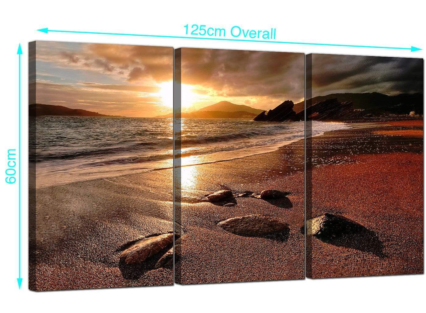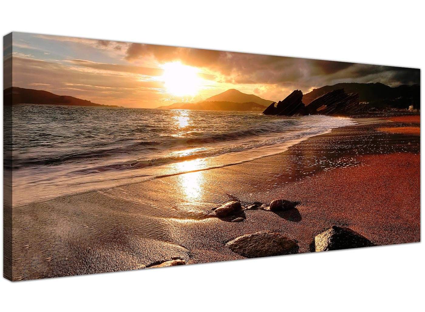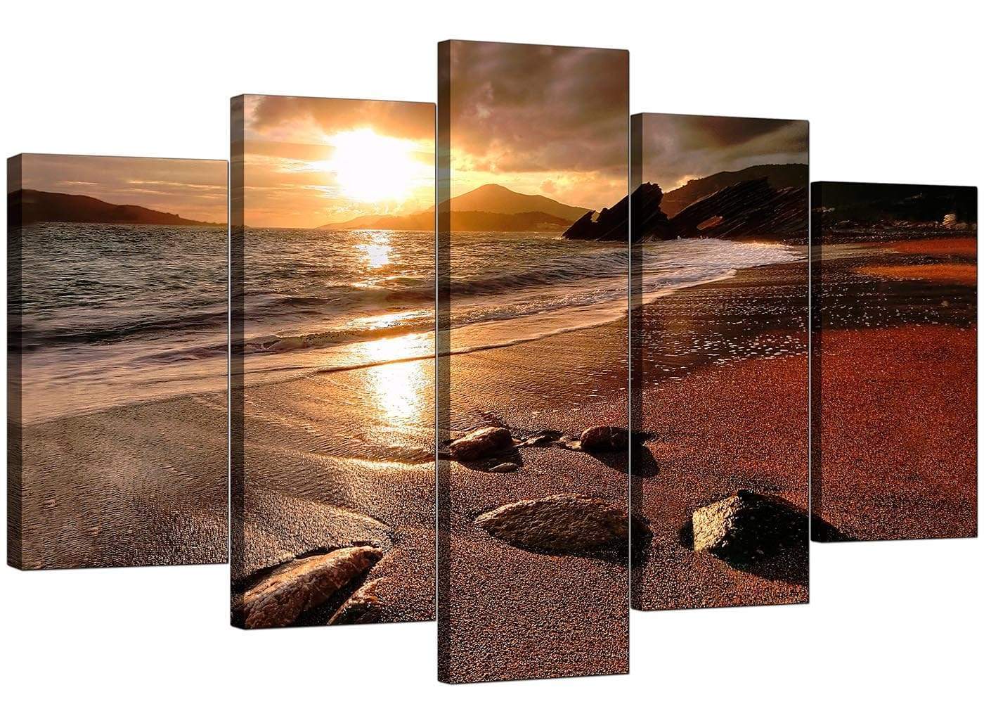 Modern Sunset Beach Scene Golden Brown Landscape Canvas