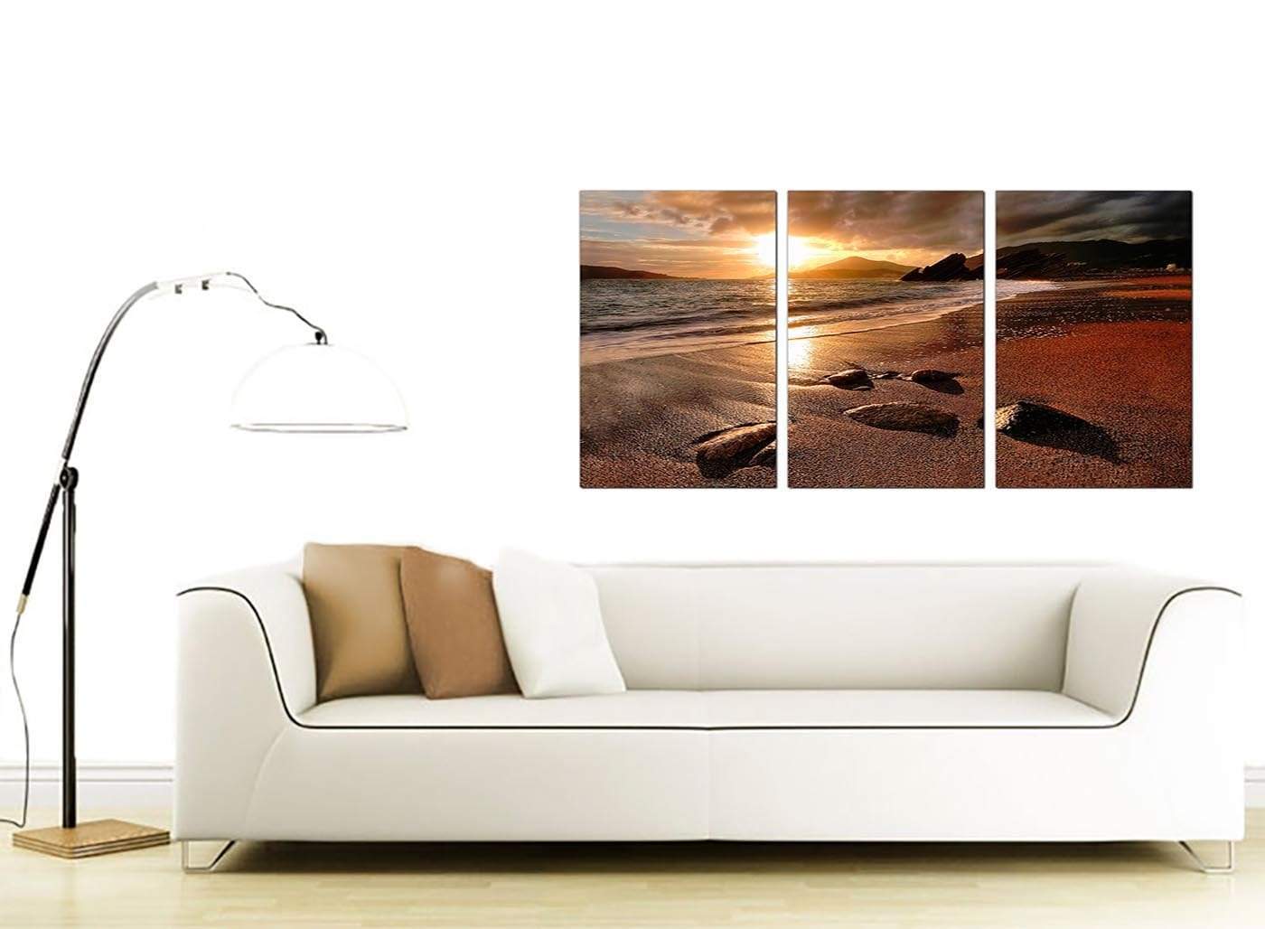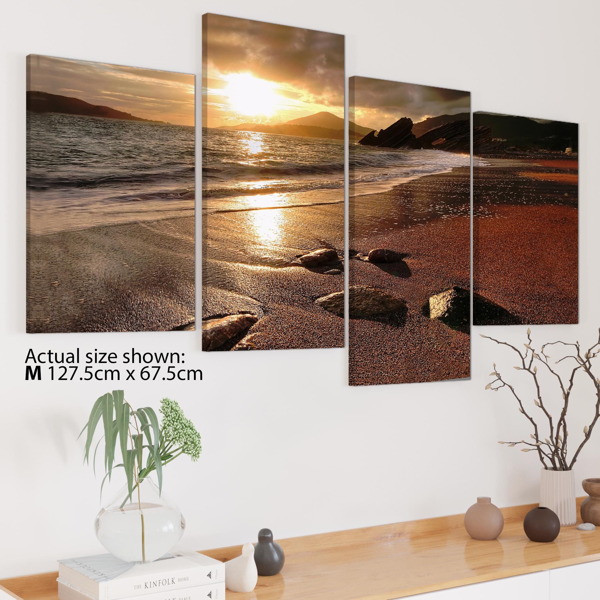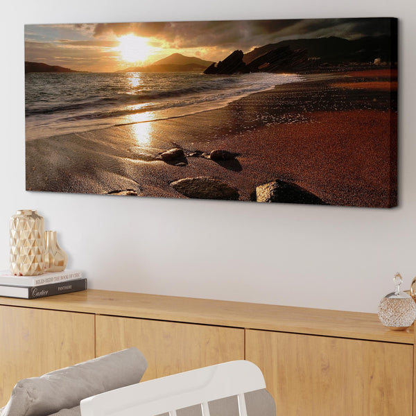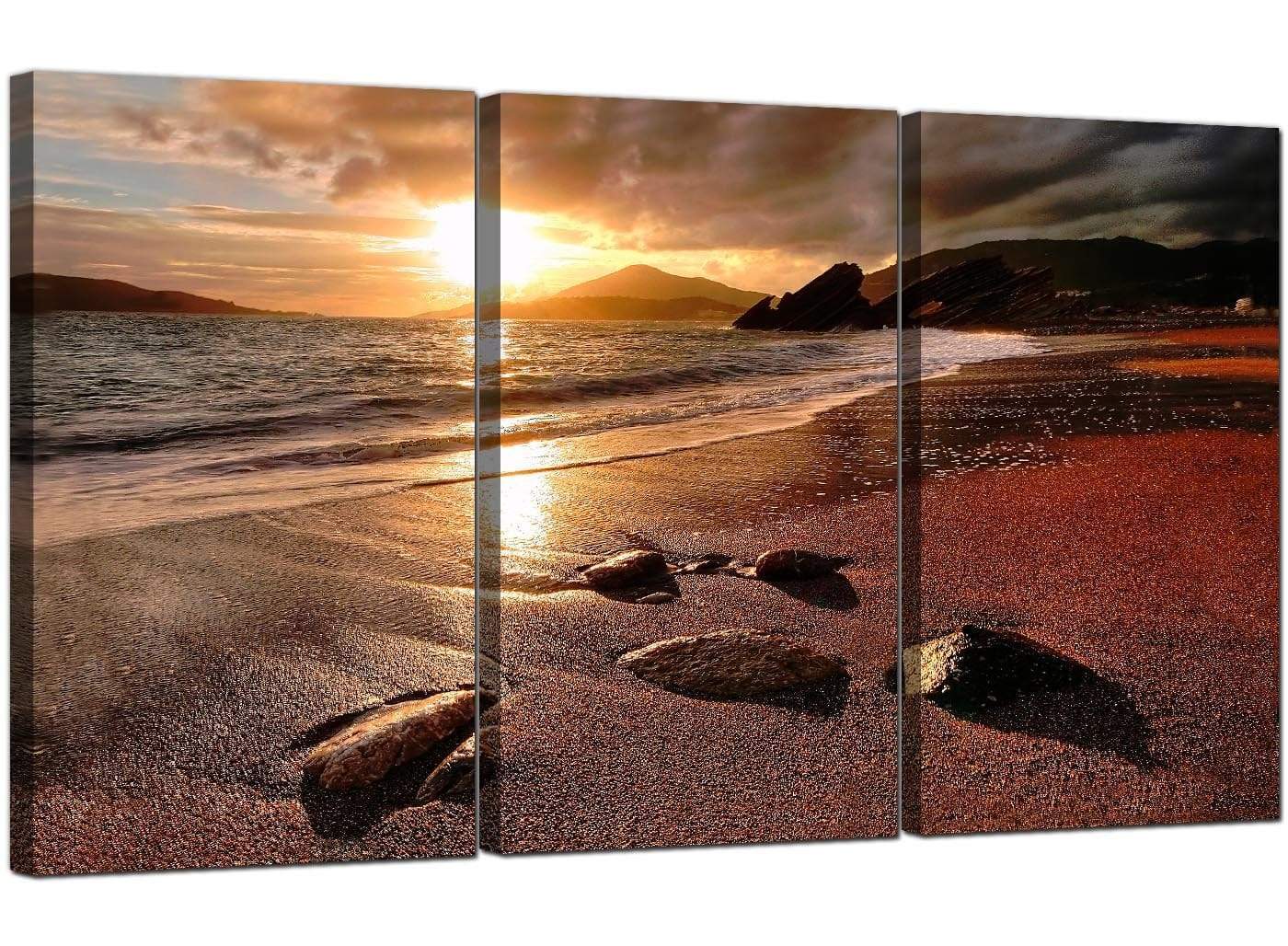 Modern Sunset Beach Scene Golden Brown Landscape Canvas
