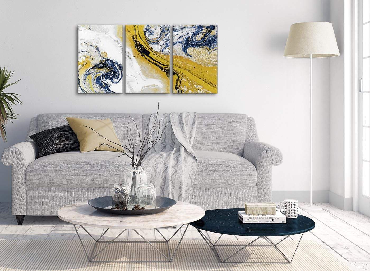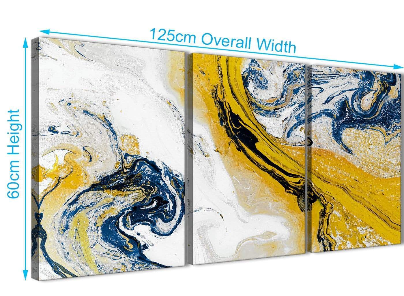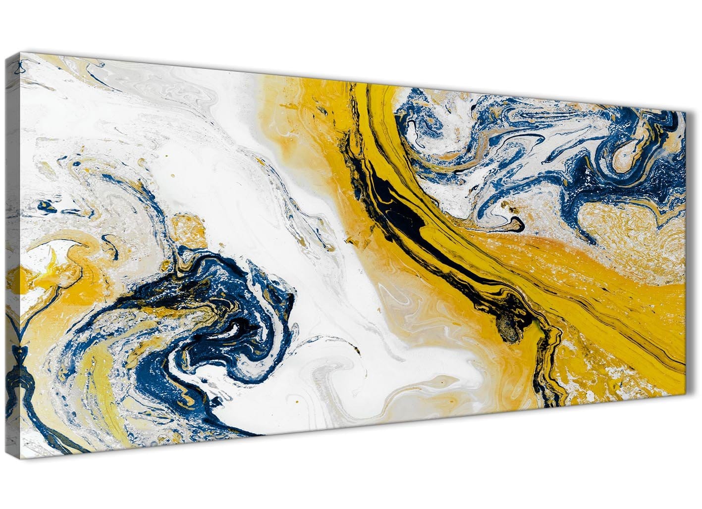 Mustard Yellow and Blue Swirl Living Room Canvas Pictures Accessories - Abstract Print