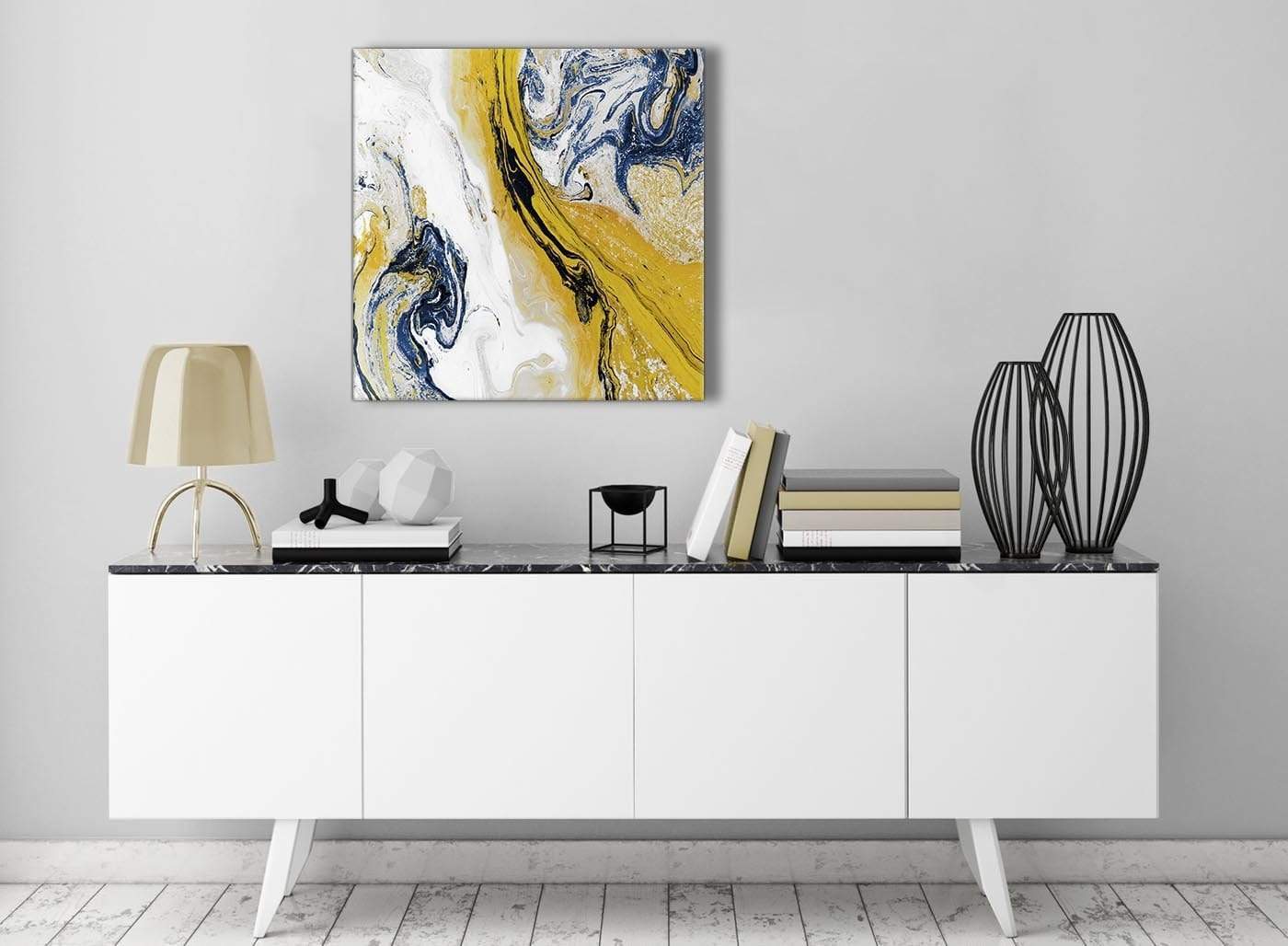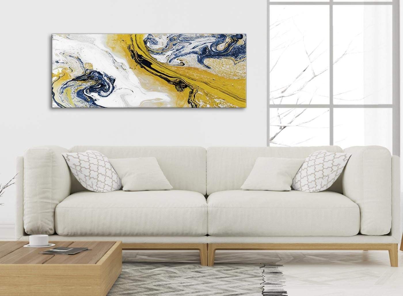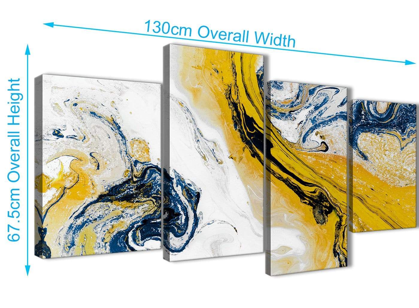 Mustard Yellow and Blue Swirl Living Room Canvas Pictures Accessories - Abstract Print