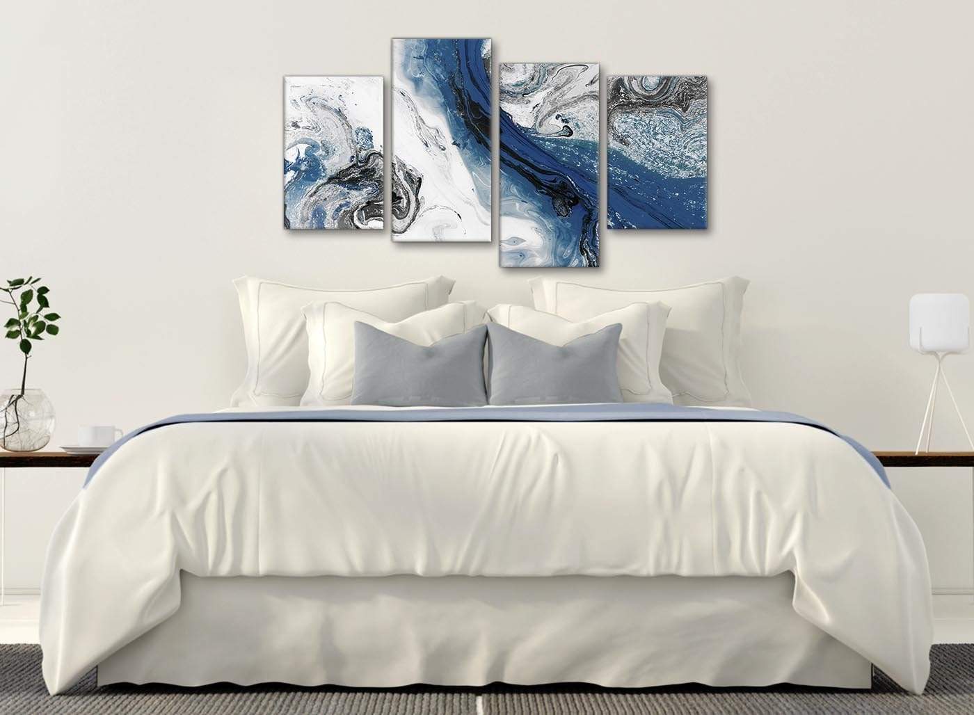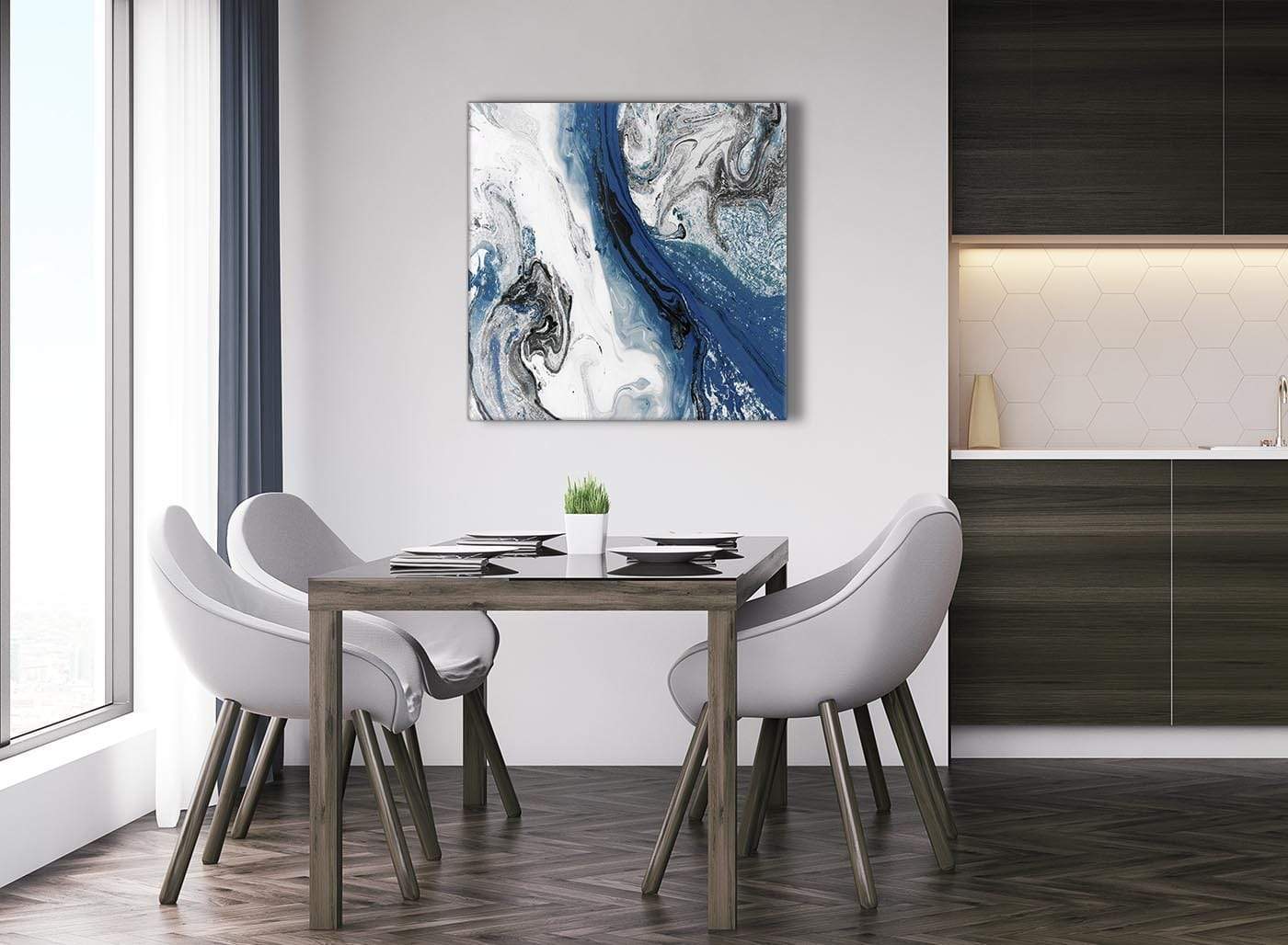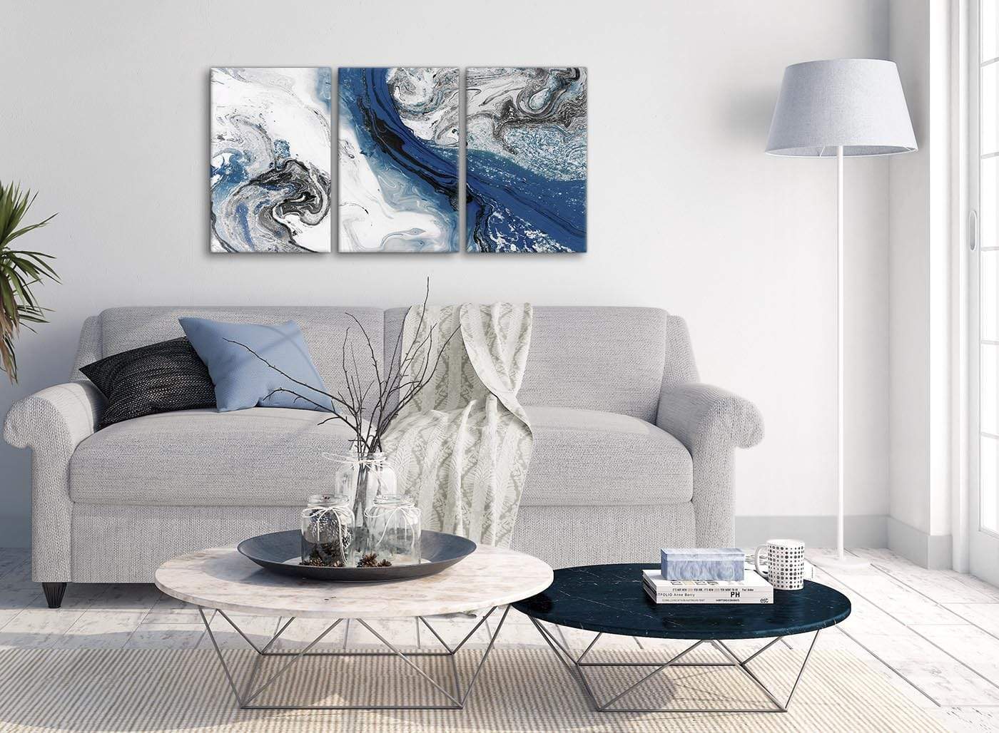 Blue and Grey Swirl Living Room Canvas Wall Art Accessories - Abstract Print