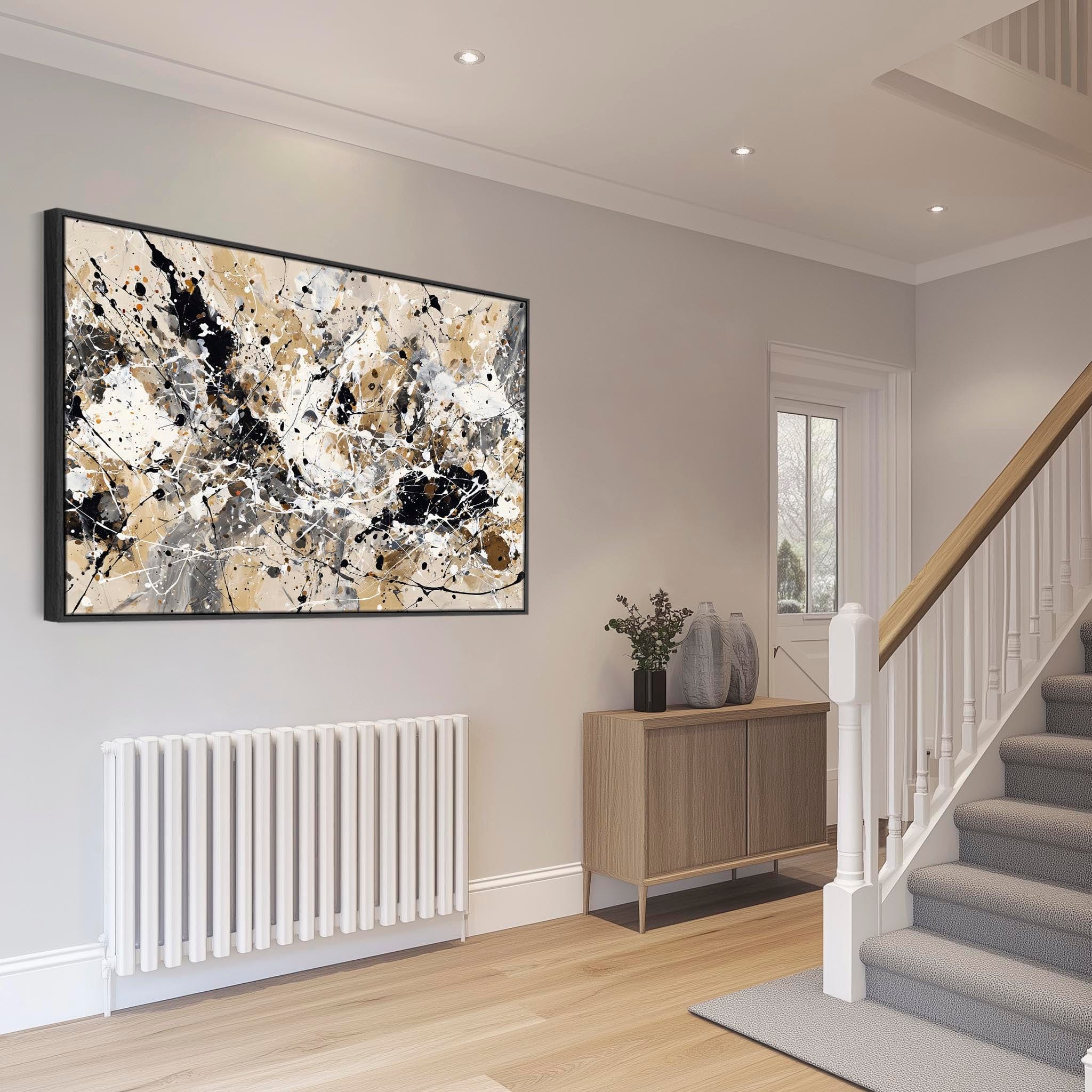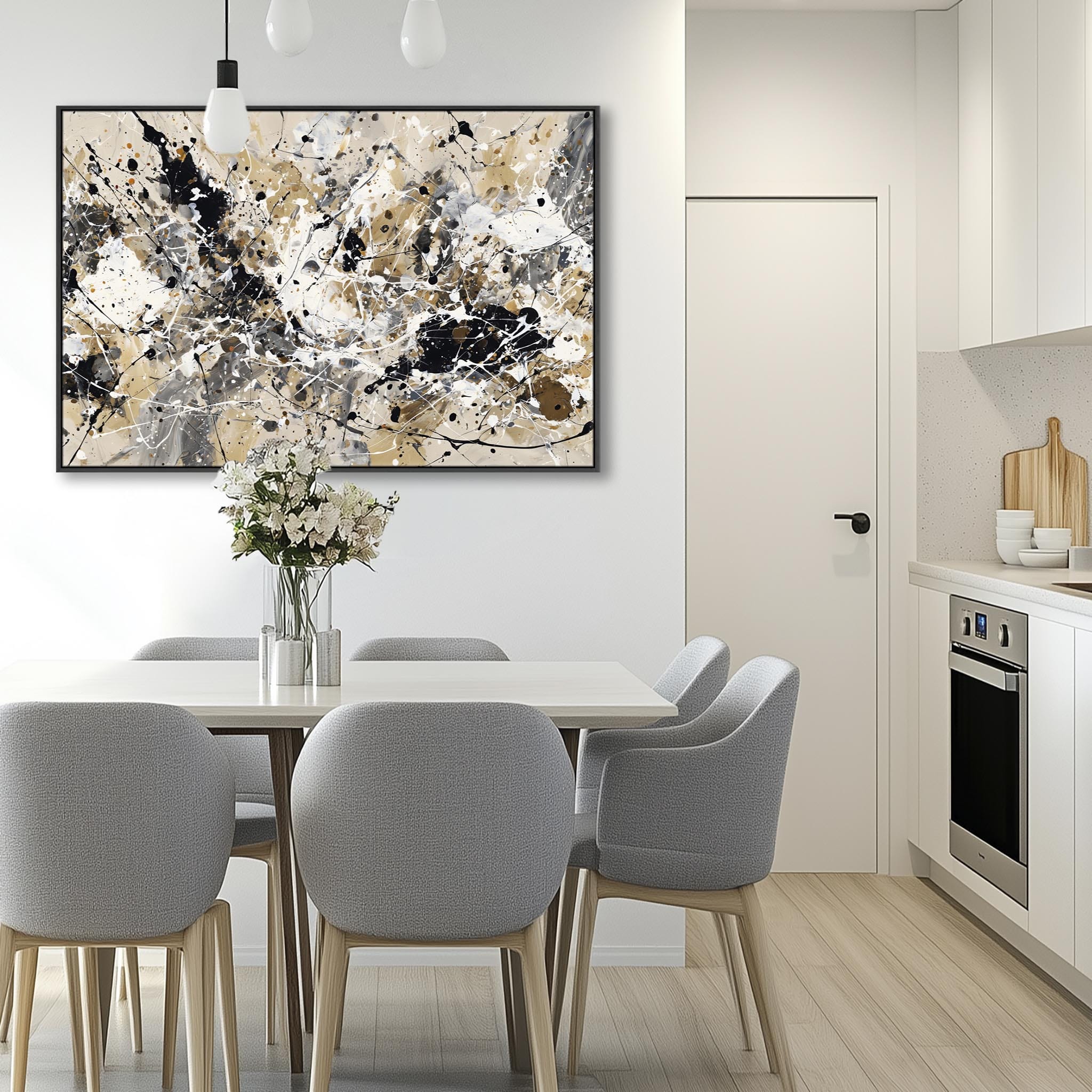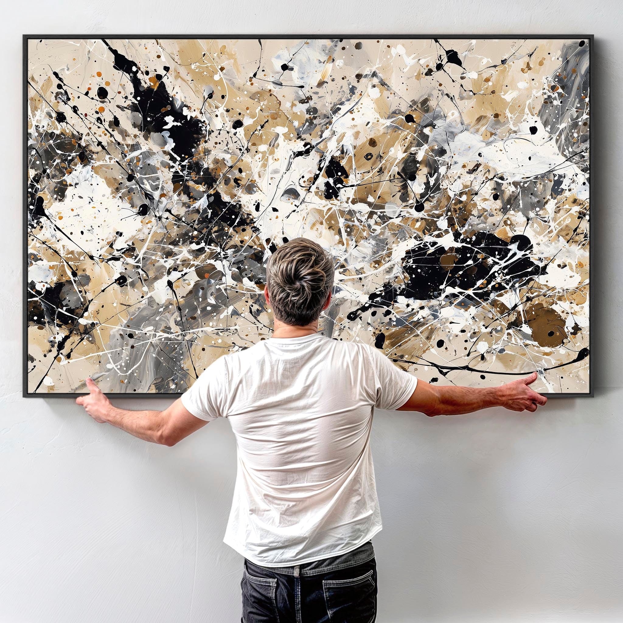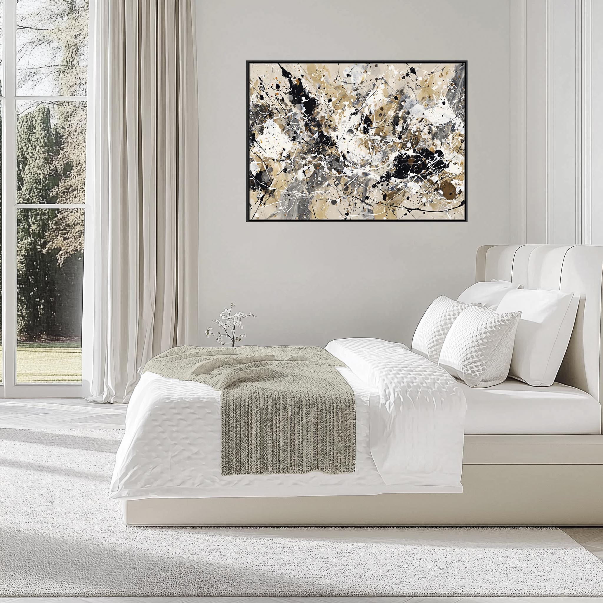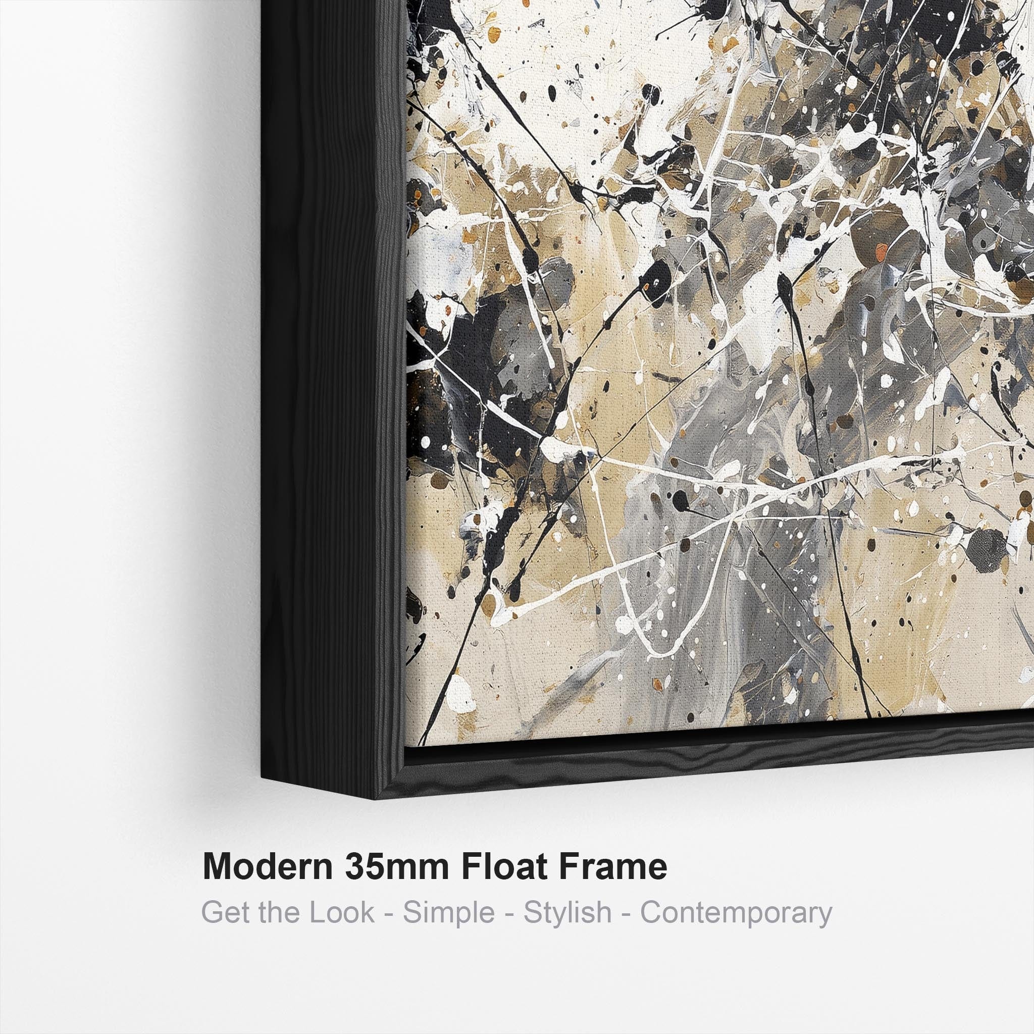 Neutral Black Jackson Pollock Style Abstract Artwork Framed Cream Impact
