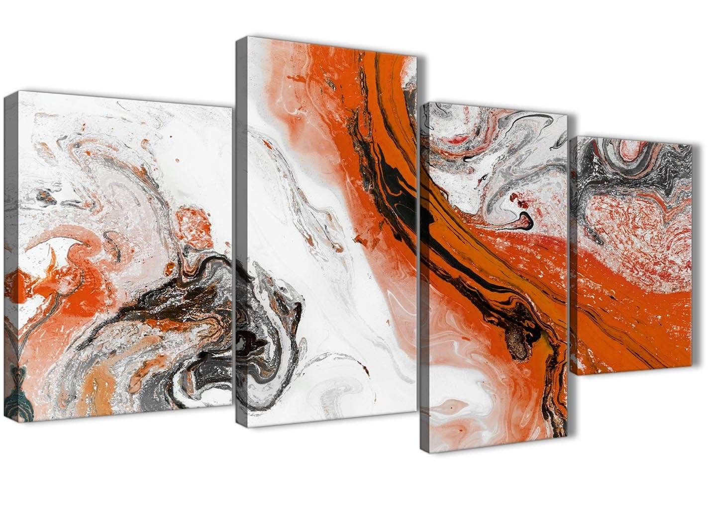 Orange and Grey Swirl Living Room Canvas Wall Art Accessories - Abstract Print