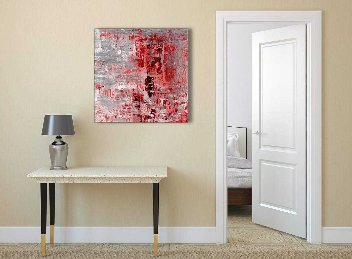 Red Grey Abstract Canvas Wall Art Pictures