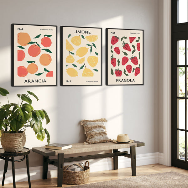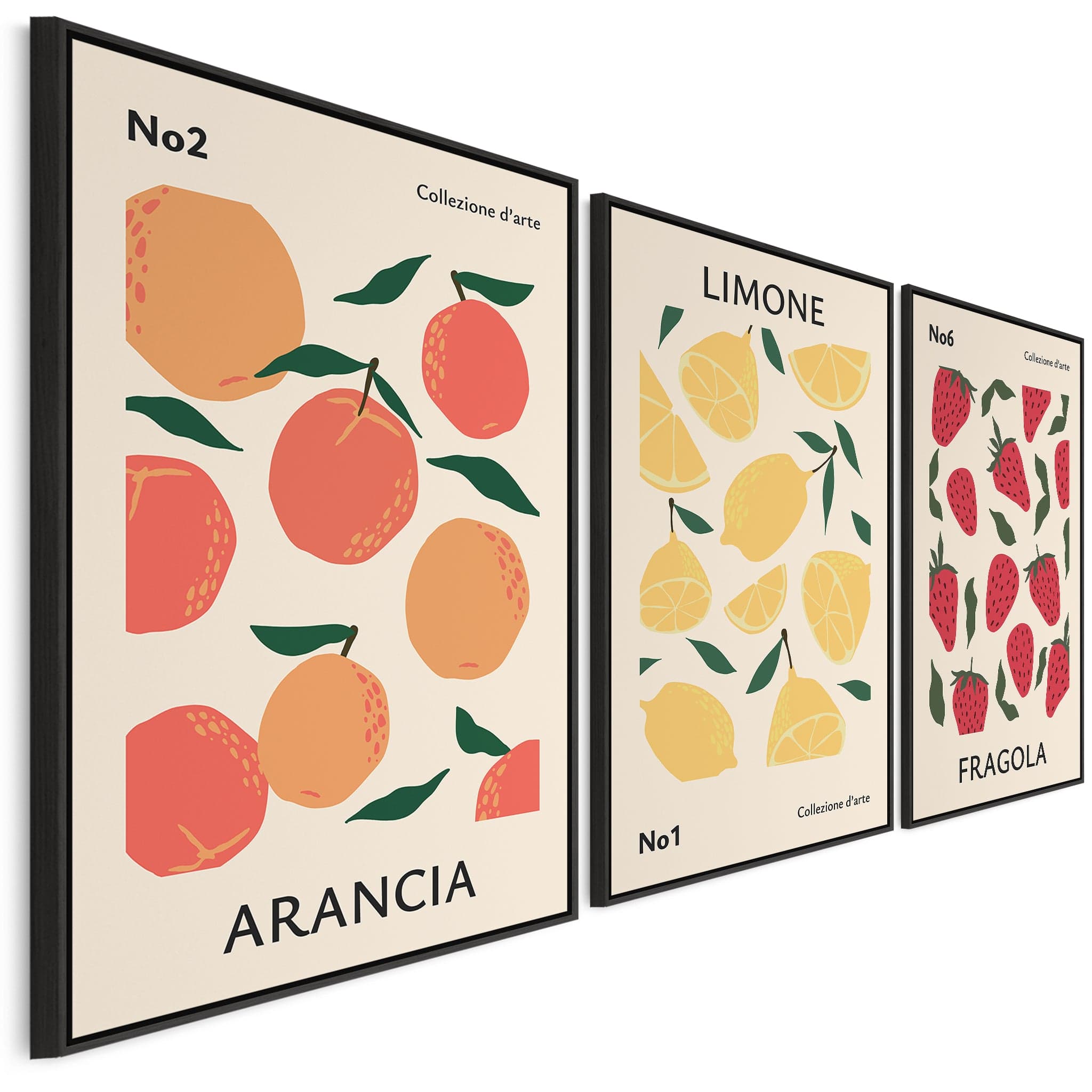 Set of 3 Kitchen Wall Art - XL Framed Canvas Prints -Fruits - 2m Wide
