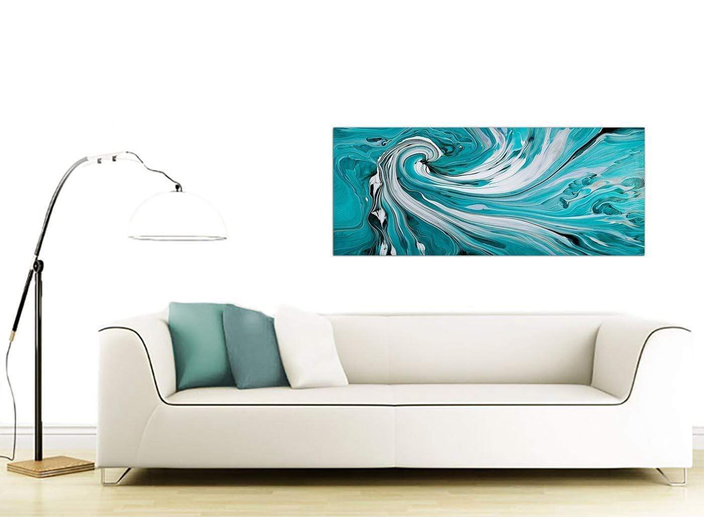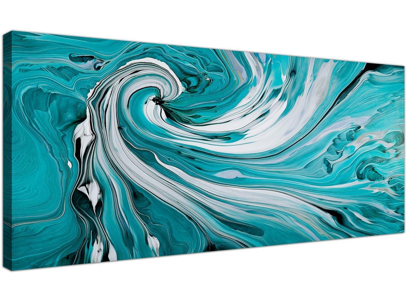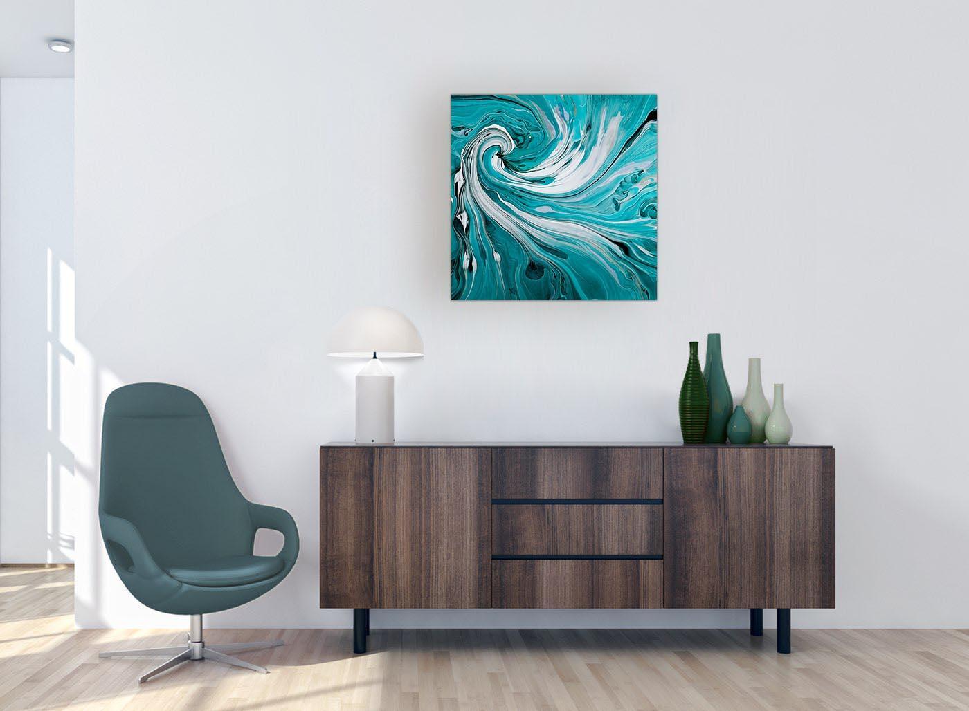 Teal White Grey Modern Swirls Abstract Canvas Art