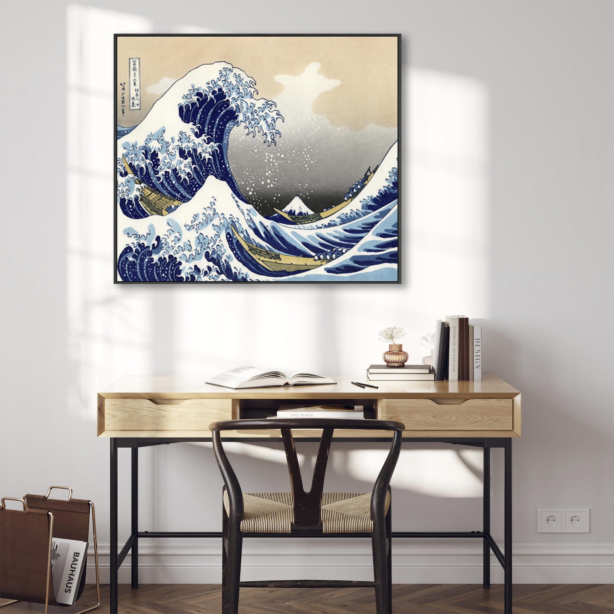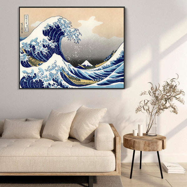 The Great Wave of Kanagawa Japanese Wall Art Framed Canvas Print by Katsushika Hokusai