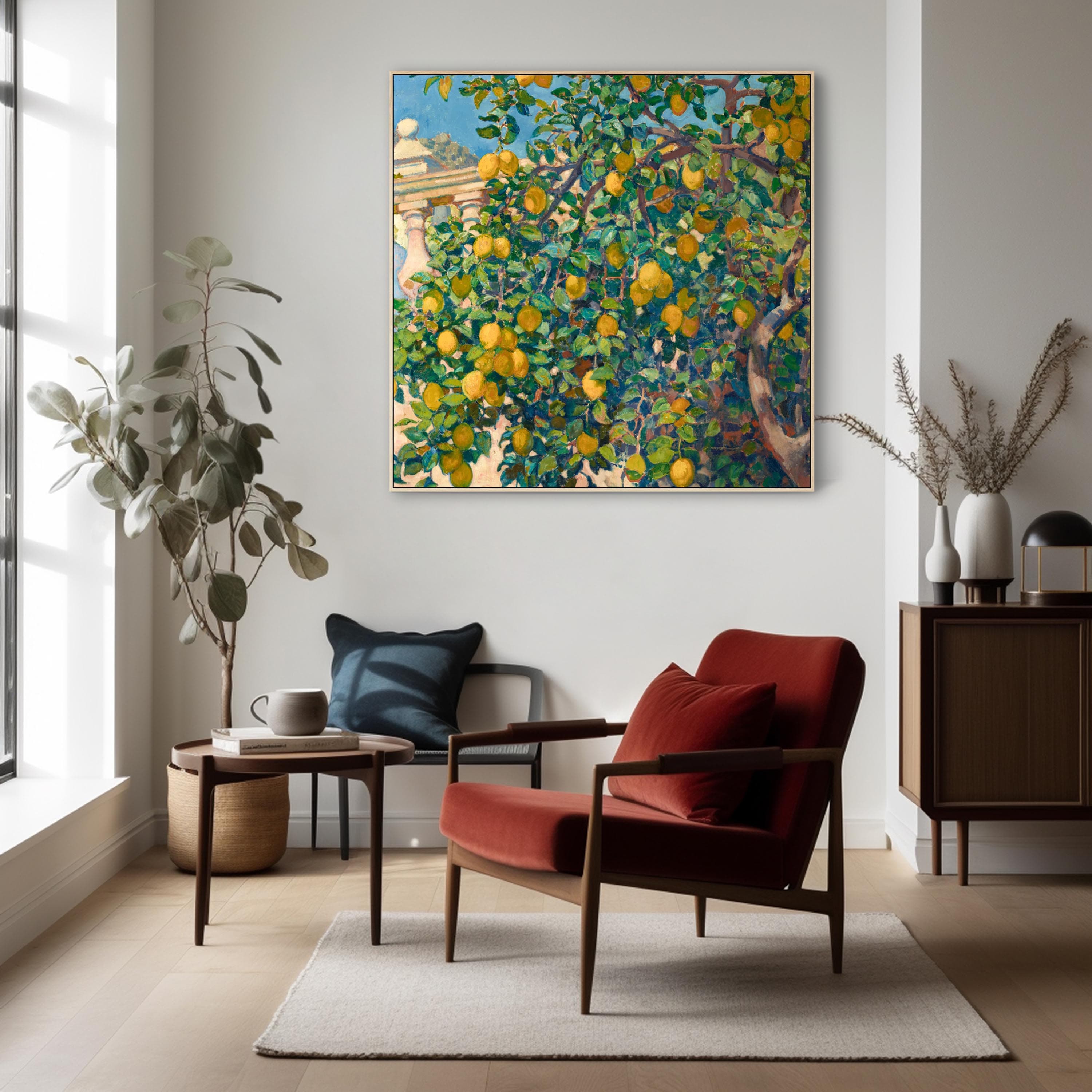 Theo Van Rysselberghe - Framed Wall Art Print Canvas Picture - Lemon Trees at Mortola