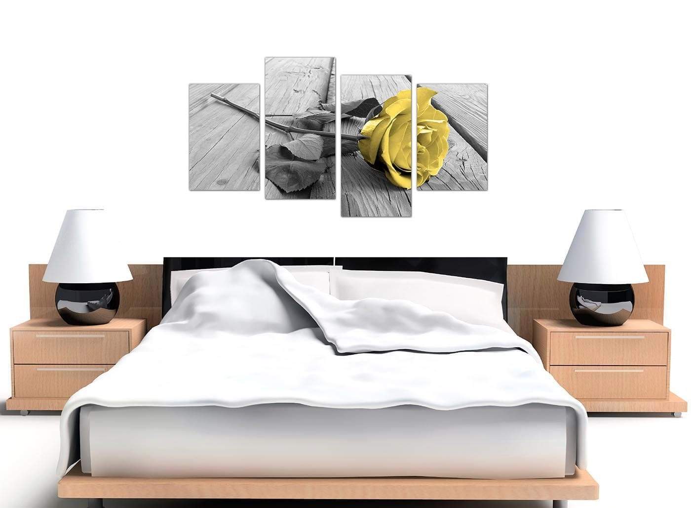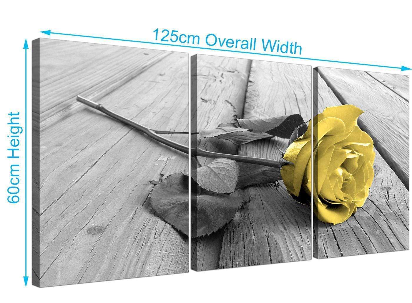 Yellow Grey Rose Flower Black White Floral Canvas Art